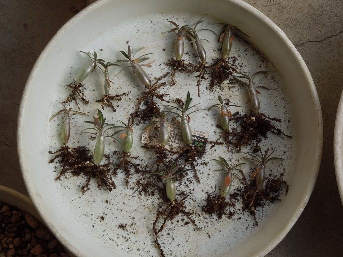 まだ小さいので何のパキポだかわかりませんね、誰か分かりますか?ちなみに、私がいつも使っている用土は市販の多肉用土と草花用の用土を混ぜたものですがパキポの種類によって混ぜ方を少し変えています。 I can't see what variety of pachypodium because still seedling.Anyone can determine?Incidentally,soil I use is commercially available soil that I mixed with soil for succulent and soil for flowers.But changing mixture a little by deffrence of pachypodium variety.