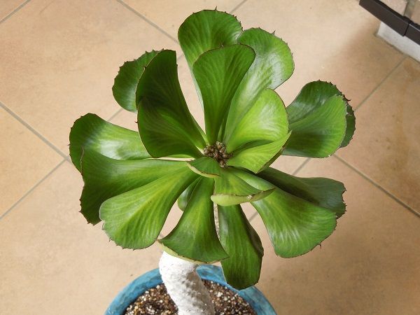 ポイゾニー(大) これは以前ベネニフィカとしていたものですが、ポイゾニーだとの指摘を受けて調べてみたらベネニフィカとは葉の形がずいぶんと違いました。関西の〇〇愛仙園からの入手品ですが、ここはサボテンん以外の物は・・・ 枯れ木のサルコカウロンが届いたこともあるし・・・guaranteeは70点くらいでしょうか
