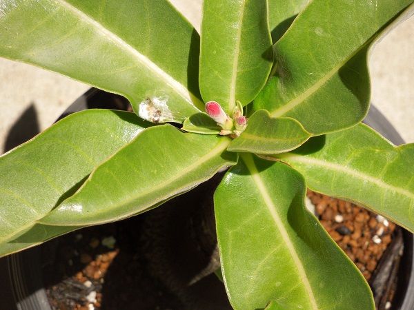 水を遣っていたらつぼみが上がっているアデニウムがあるのに気づきました。