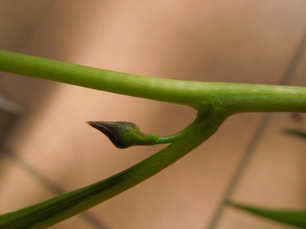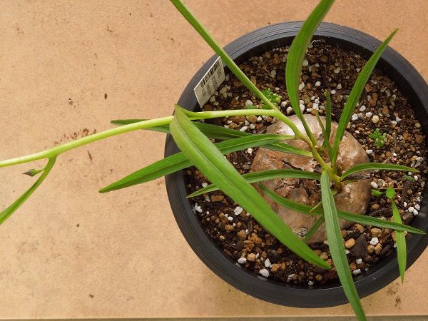 入手してから5年くらい、花も咲かず、植え替えもせず。今年植え替えをしてみたら鉢は根が一杯になっていました。一回り大きい鉢に植え替えてから調子が良さそうで再び伸び始めました。