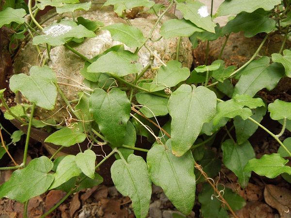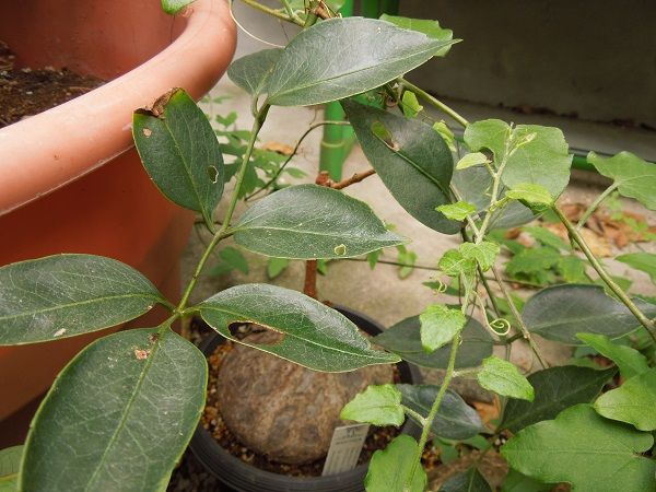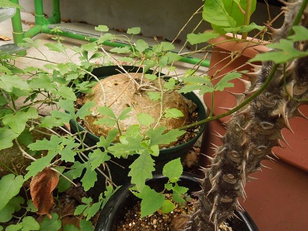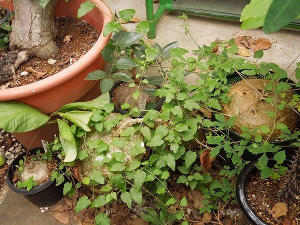 キフォステンマパキプス (今年は根が伸びなかったからか蔓もあまり伸びませんでした。昨年も一昨年も鉢から地面に根が伸びた年は蔓の伸び方が全然違いました。)