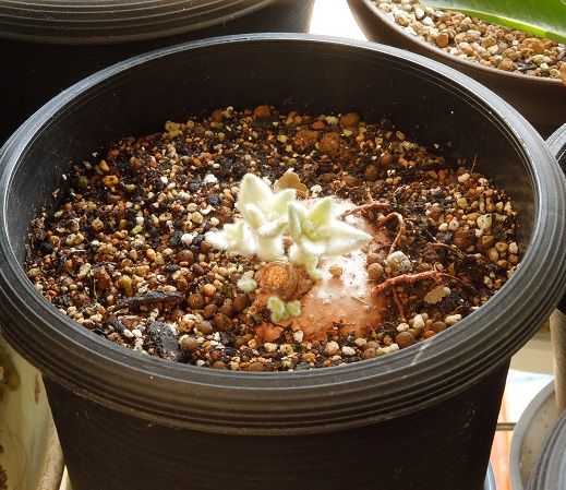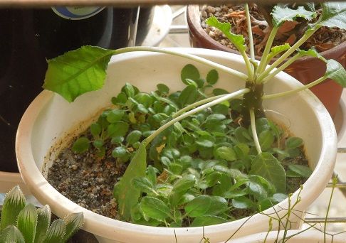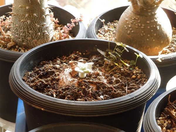 昨年実生した断崖の女王はまだ生存競争中。今年こそ、もっとまばらに上手く蒔こう。