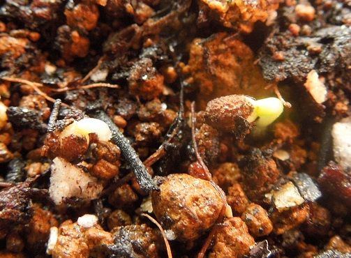 先日試し蒔きした花きりんが発芽しました。発芽したのは芋花きりん、6粒蒔いて2粒発芽。20℃設定のケース内では少し温度が足りないのか、夏季の種まきより2~3日遅れ発芽まで1週間くらいかかりました。一緒に蒔いた大型のはなきりんはまだ発芽していません。
