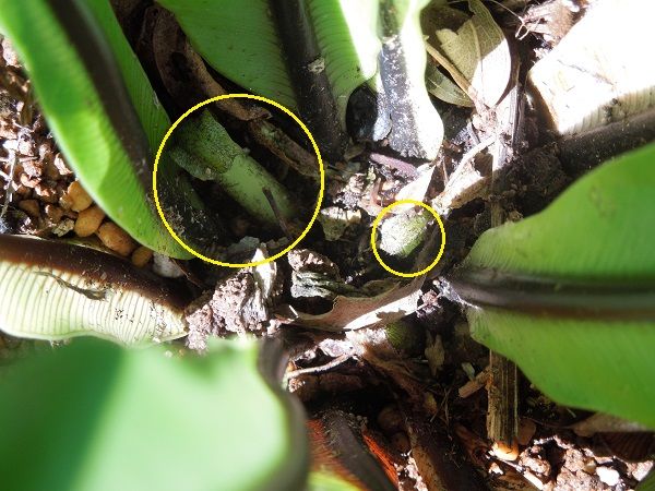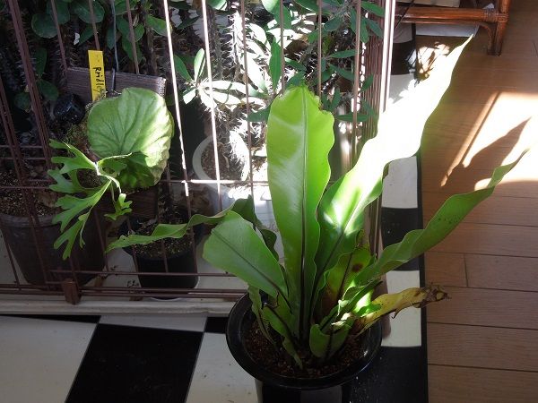 こちらでは観葉植物のコーナーに売っているのを見かけますが、島内どこにでも自生しているオオタニワタリ、園芸店の展示場内に生えていたのをもらってきました。意外と強そうで、ビカクシダの森さんで分けてもらったミズゴケで根を包みコンビニ袋に入れて3日かけて持ち帰りましたが全く問題ありませんでした。