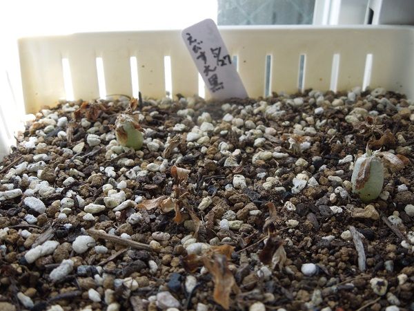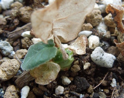 昨年自家採種の実生苗、なんとか越冬したものが動き始めました。一番残ったのがえびす笑い