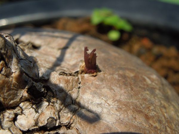 毎年動き始めるまでひやひやしているイポメアホルビーが、今年も無事に新芽を出してきた。