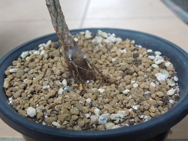 根上がり気味に植え替えたこいつはまだ新葉を出している。盆栽風に仕立ててみたい。