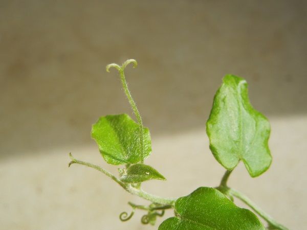 我が家に来て5~6年になると思う。一昨年から根が延びれば芋も大きくなるかと思い成長期の夏季は地面に鉢を置いているが、芋と鉢の隙間を見るとほとんど塊茎部の大きさはほとんど変わっていないみたいだ。