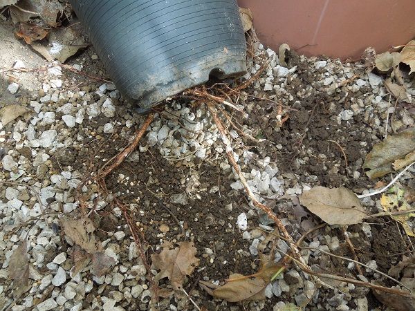 地面に置くようにしてからは毎年鉢底から根を出している。今年も太い根がしっかり伸びていた。