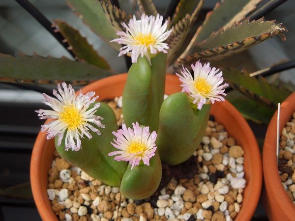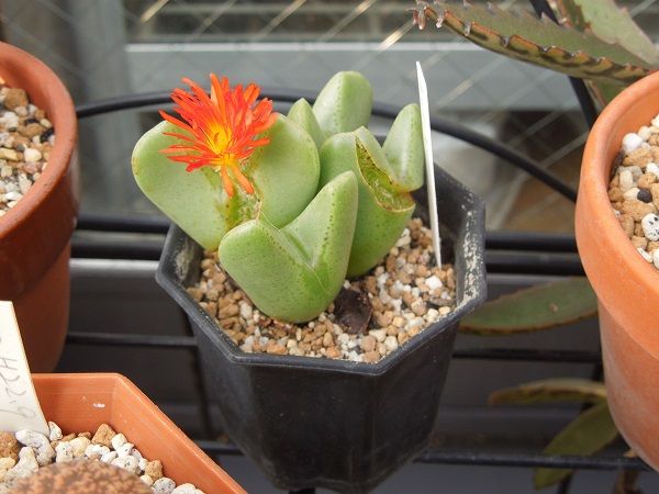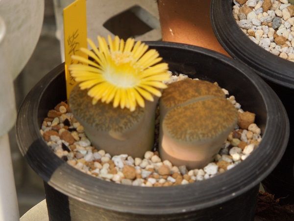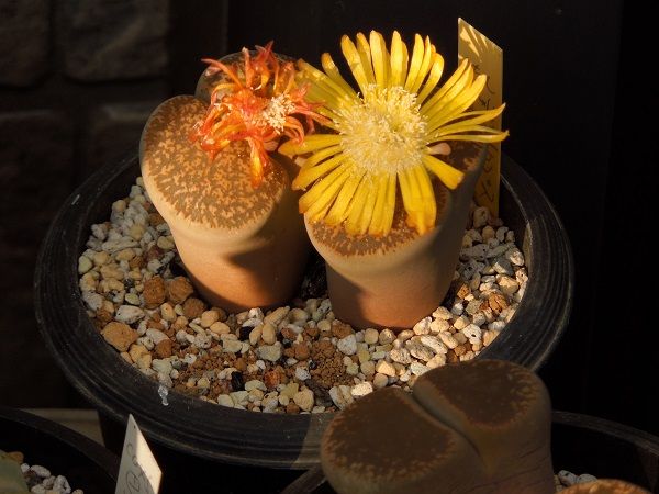 他にはコノフィツムとリトープスがぽつりぽつりと咲いている。この時季が一番多く花が咲いている。