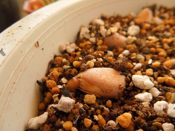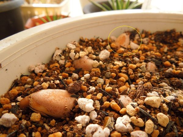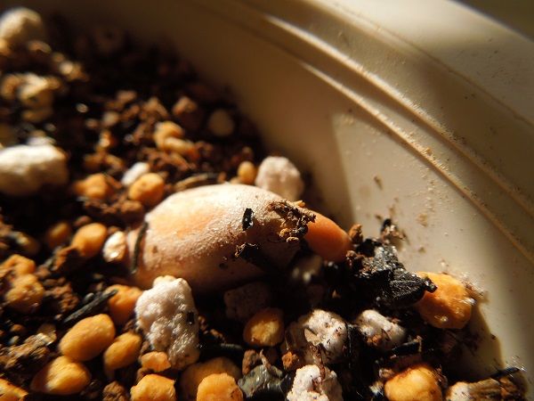 先月末に種まきをした蘇鉄、こんな時季なのであまり期待はしていなかったが「ザミアフルフラセア」が2つ発根していた。