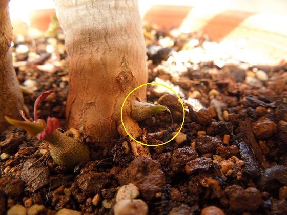 もしかして入手した翌年に出た株は、挿し木苗だった本体の不定根から出たものだったのか???