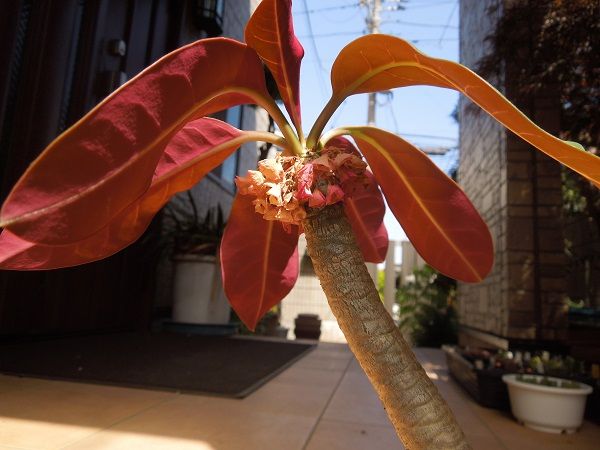 親株と離れた所から出ているのでこぼれ種から発芽したのかと思っていたが・・・