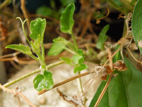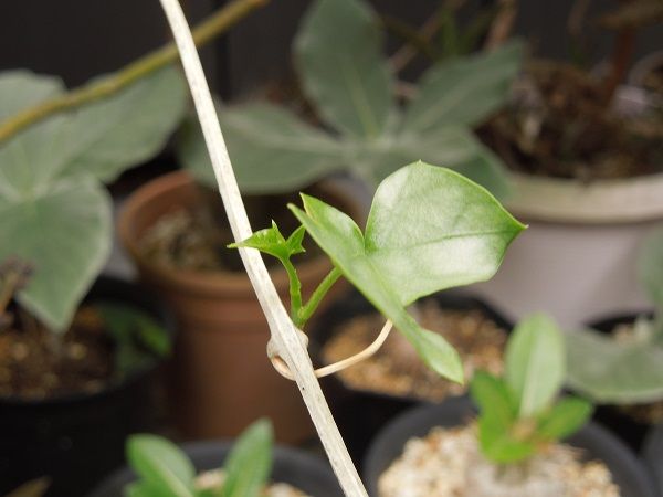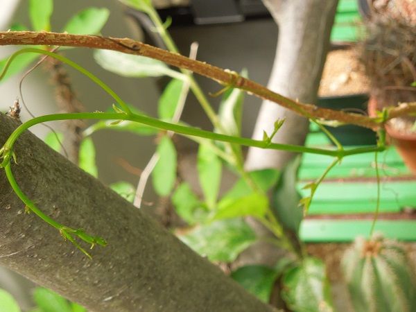 先月中ごろに屋内に出してから新芽が出始め、現在何本か新しい蔓が出ている。