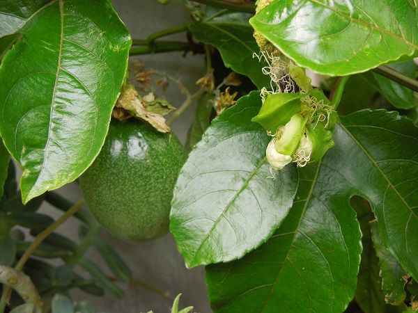 暖冬のせいかパッションフルーツは屋外で越冬し今年も開花、実を付けている。