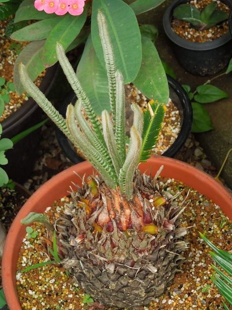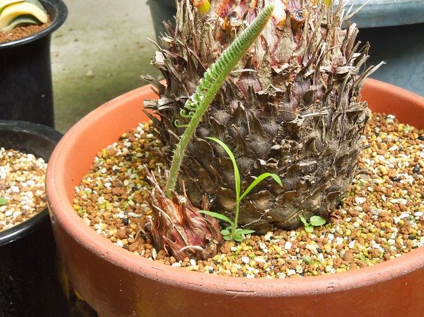 下の古い葉が無いと普通の蘇鉄と全く区別が付かない。