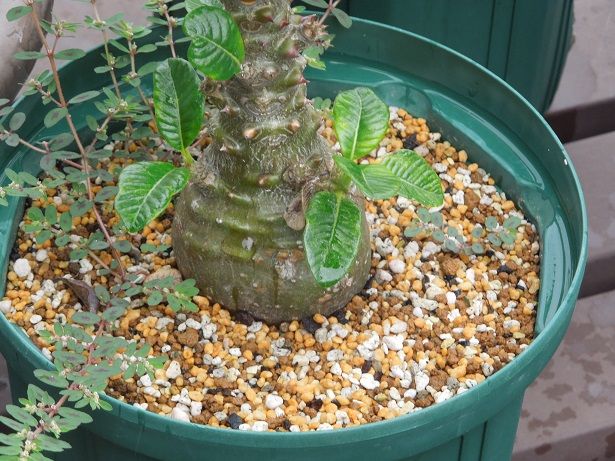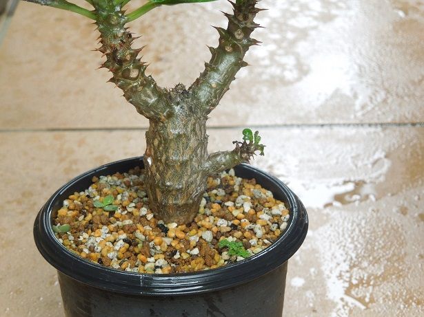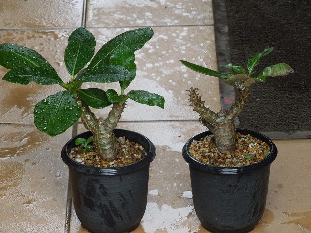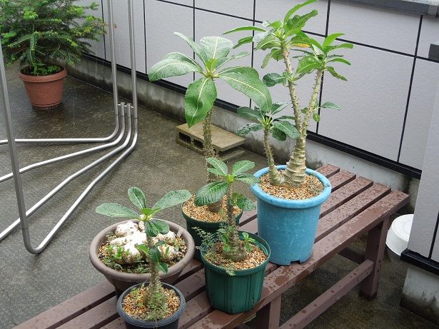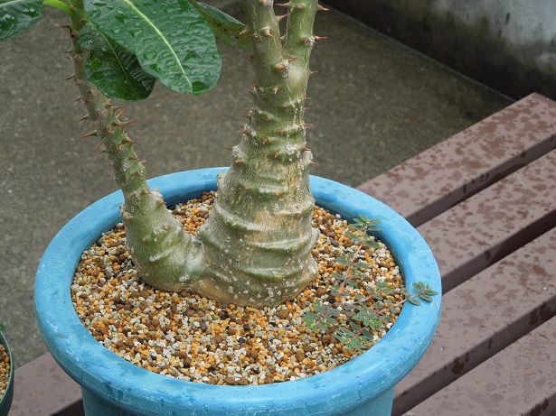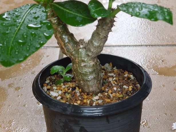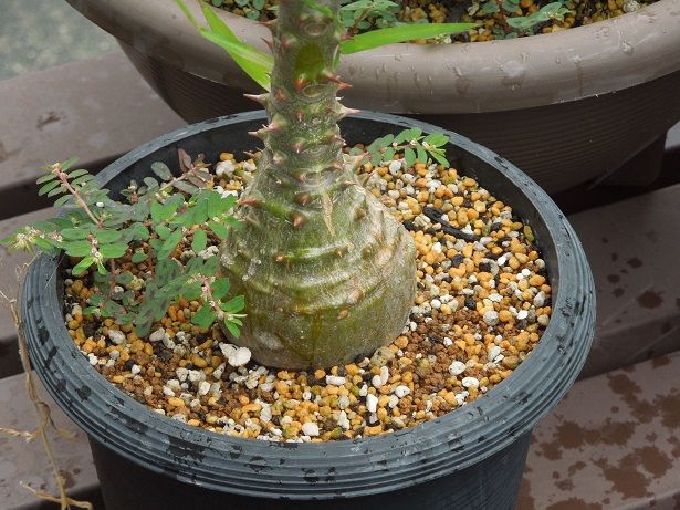 この時期のパキポディウムは屋外栽培で雨でずぶ濡れ。