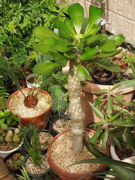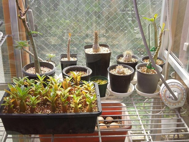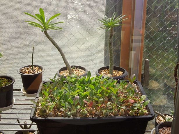 涼しくなってきたのでパキポディウムの実生苗やドルステニアギガスの挿し木苗は取り込み開始。