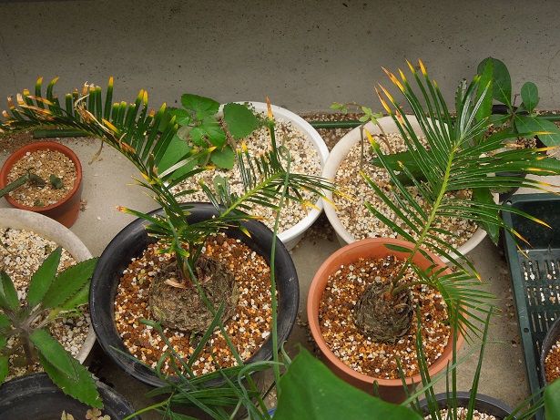 いつの間にか増えた金環蘇鉄、個体によって色々だ。