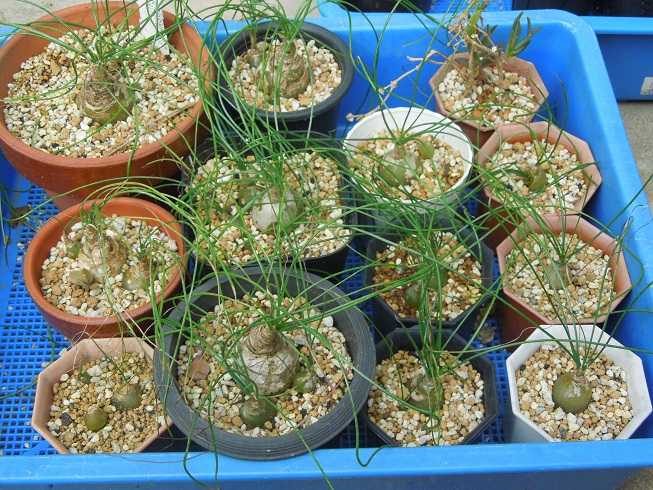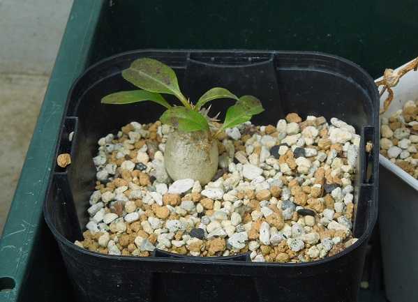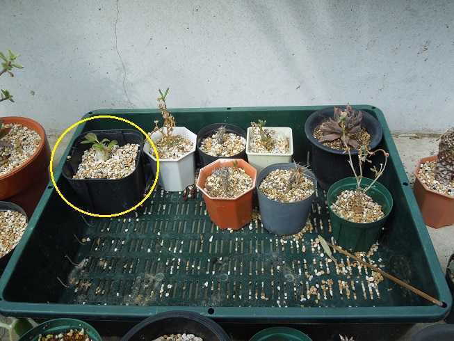 今年初めて屋外に置いてみたパキポディウムの実生苗。