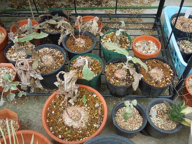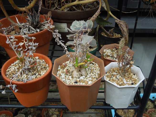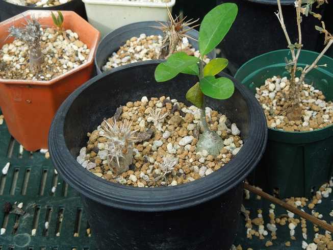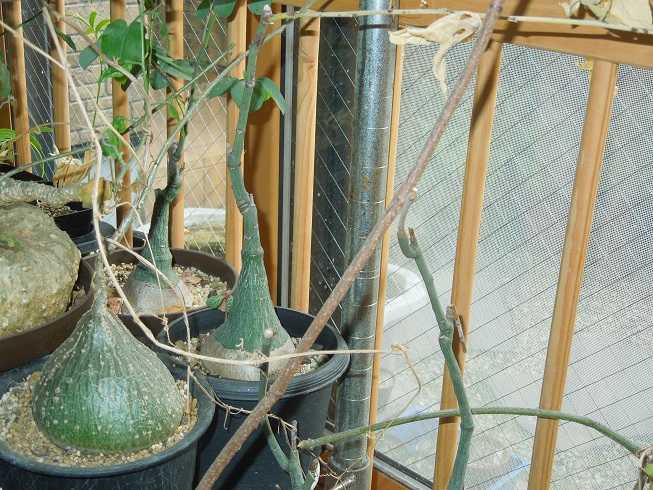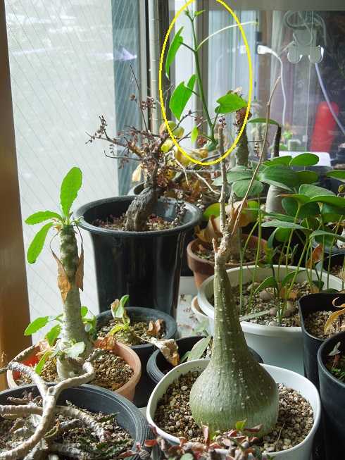 隣のパキポディウムは少しまずそうだが、これも葉を落とさない。