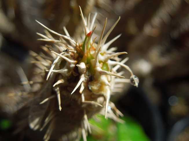 4年前に1本腐らせた後は問題無く栽培で来ているギラウミニアナ、今年も新芽を出し始めた。