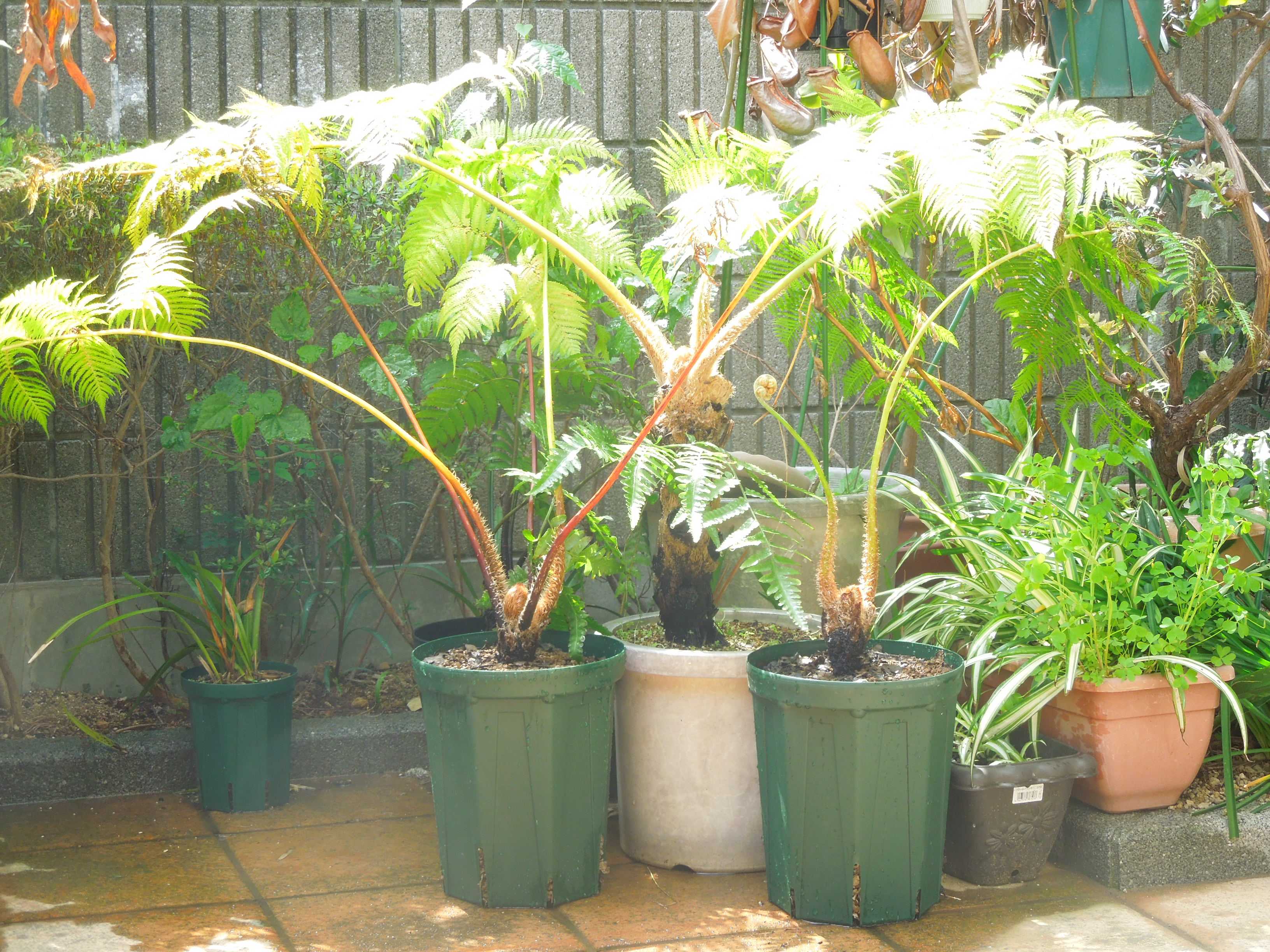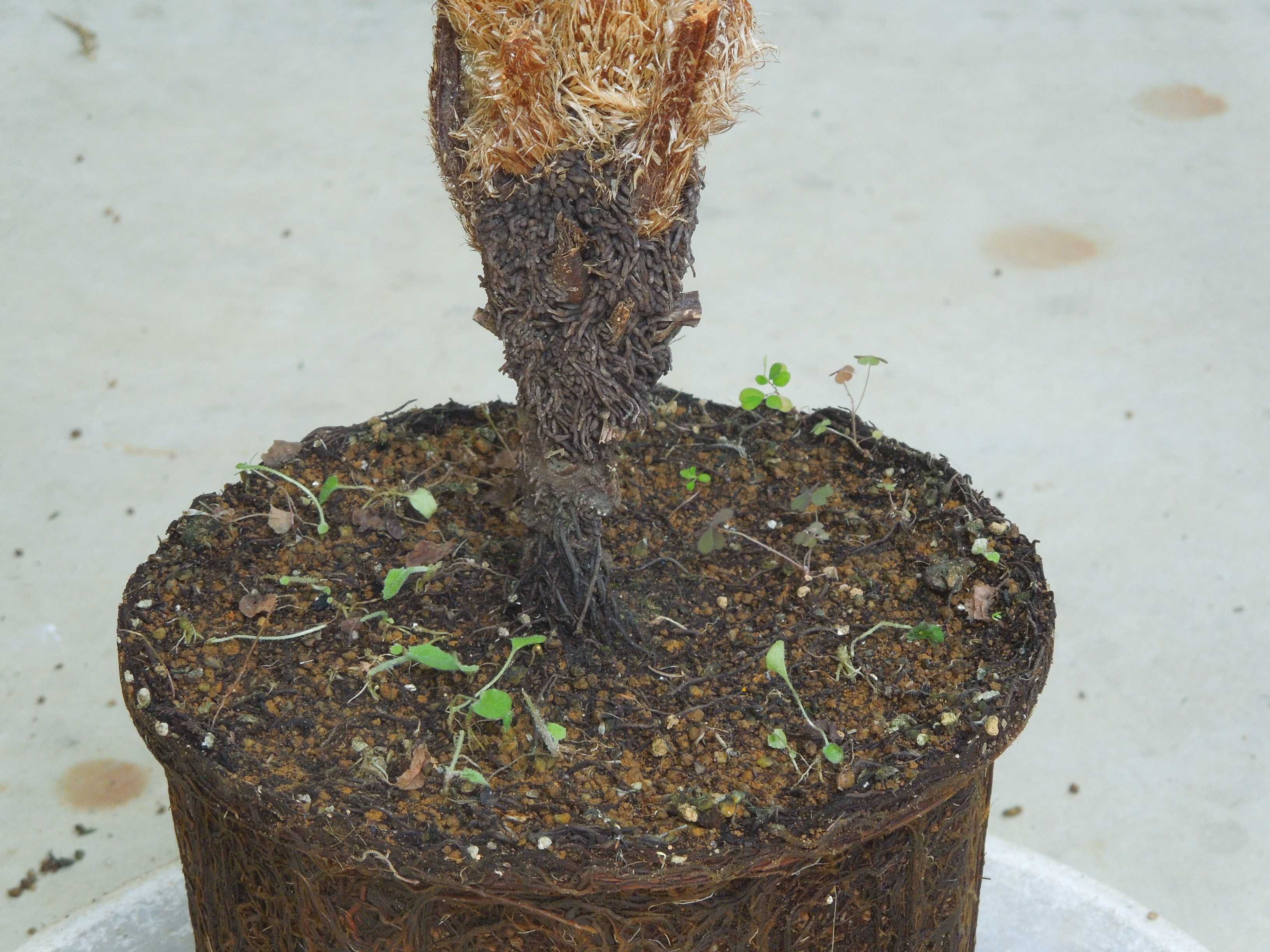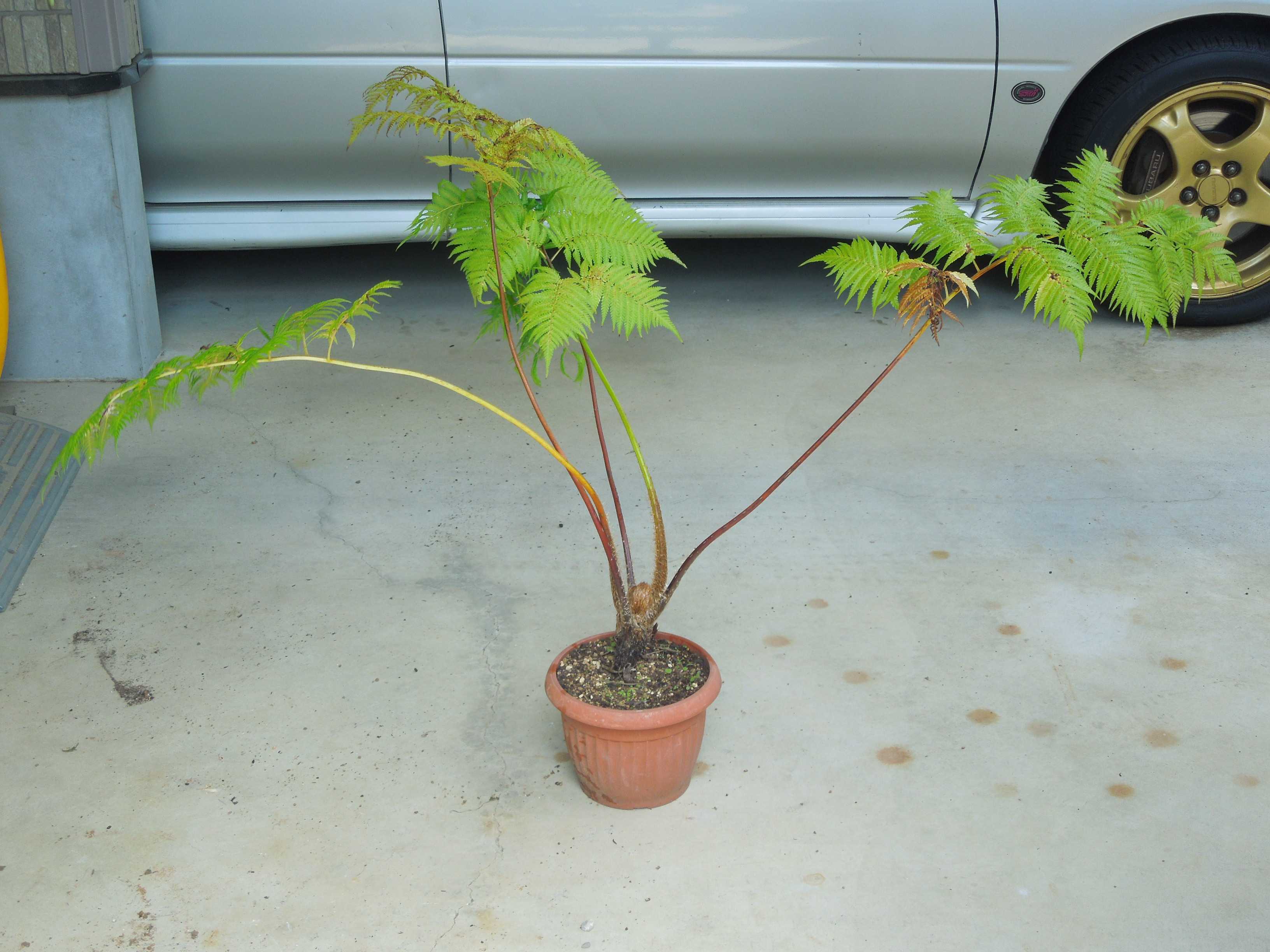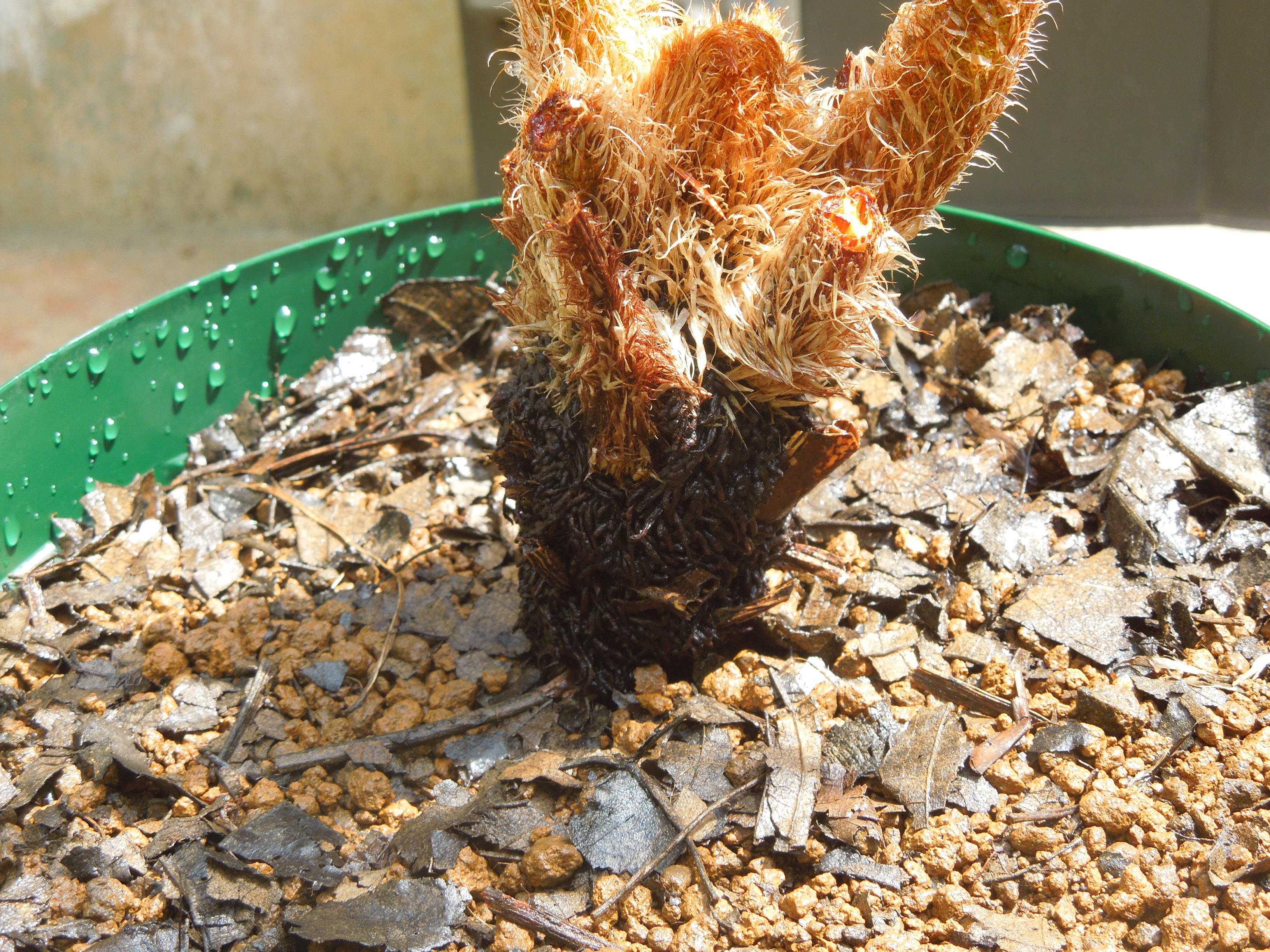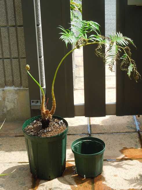 幹の上の方ばかり太くなり変な形になっていたヒカゲヘゴを植え替えた。
