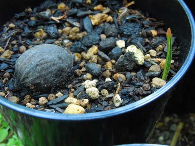 ビスマルキアの発根種子を深鉢に植え付けてからそろそろ3か月。