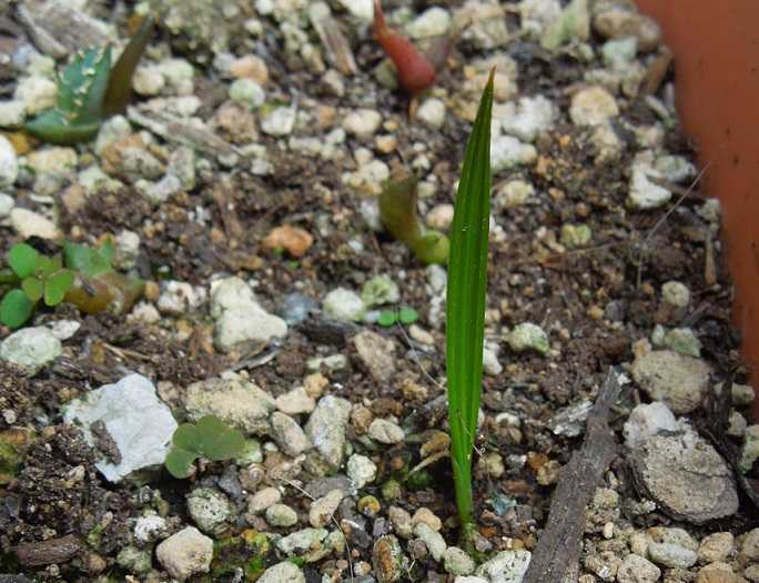 拾ってきた蘇鉄を蒔いてあったプランター。