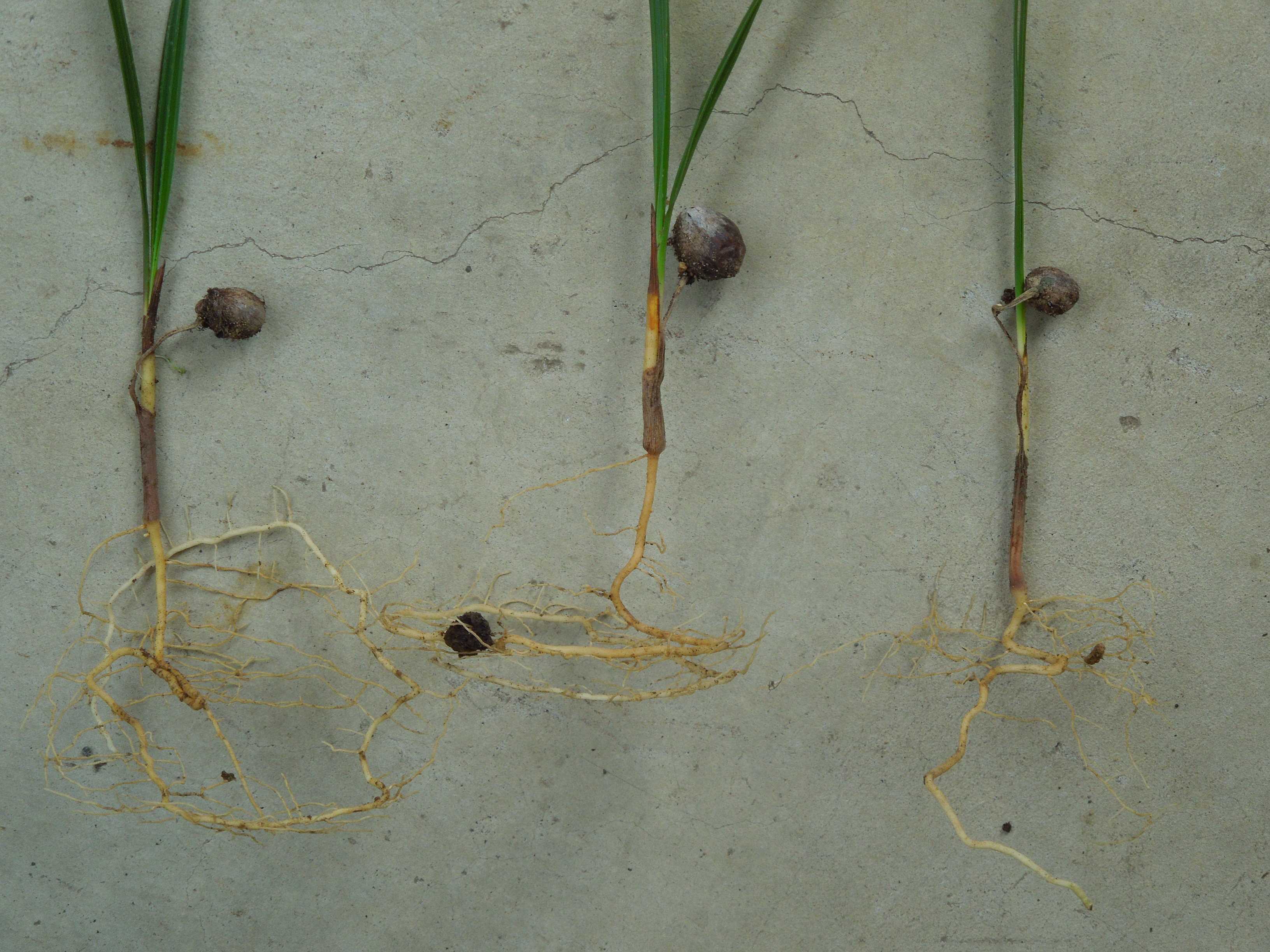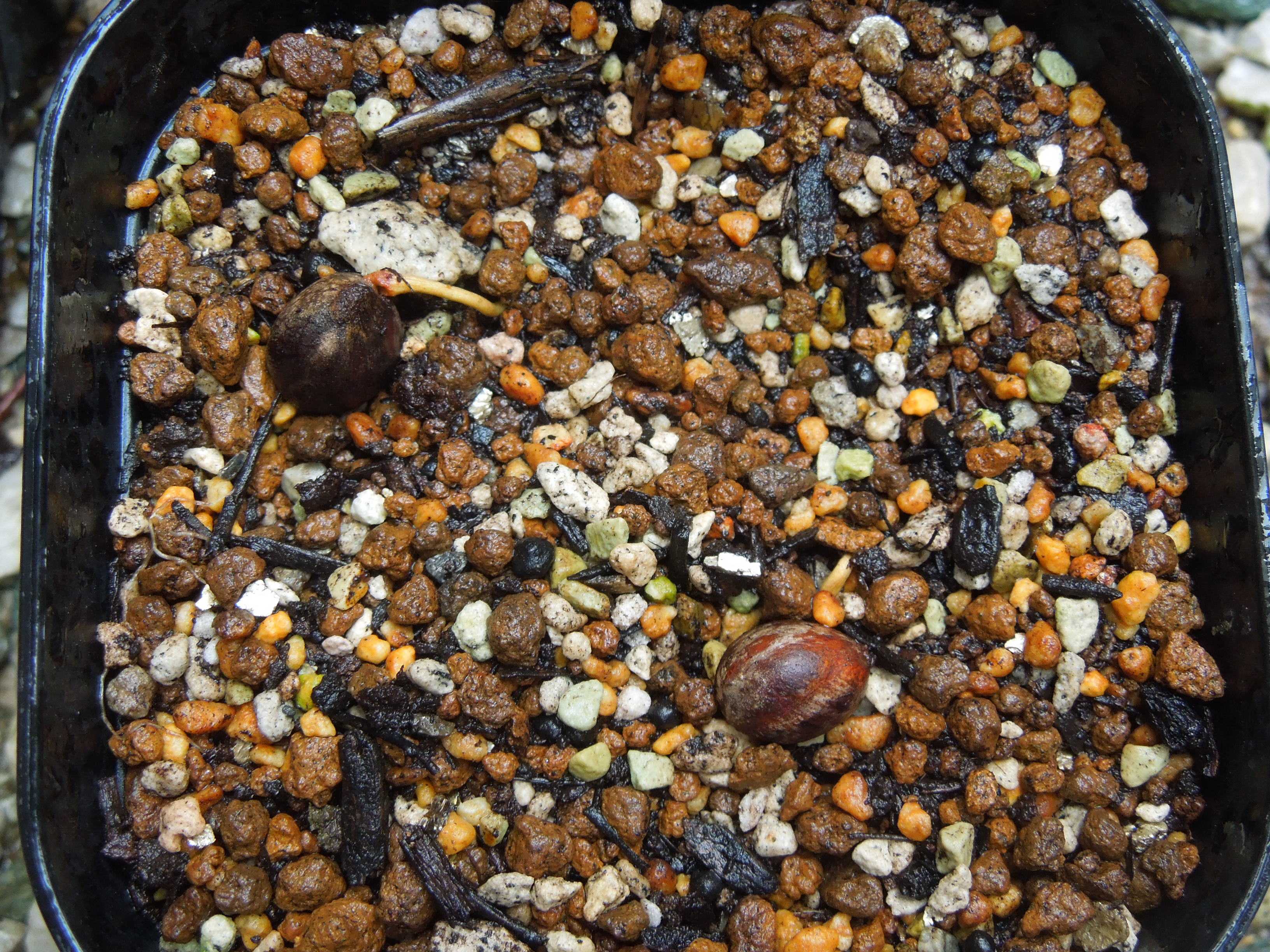 鉢をひっくり返す前に発芽していない種子を取り除いていたら、最近発根した感じの種子が2個あった。