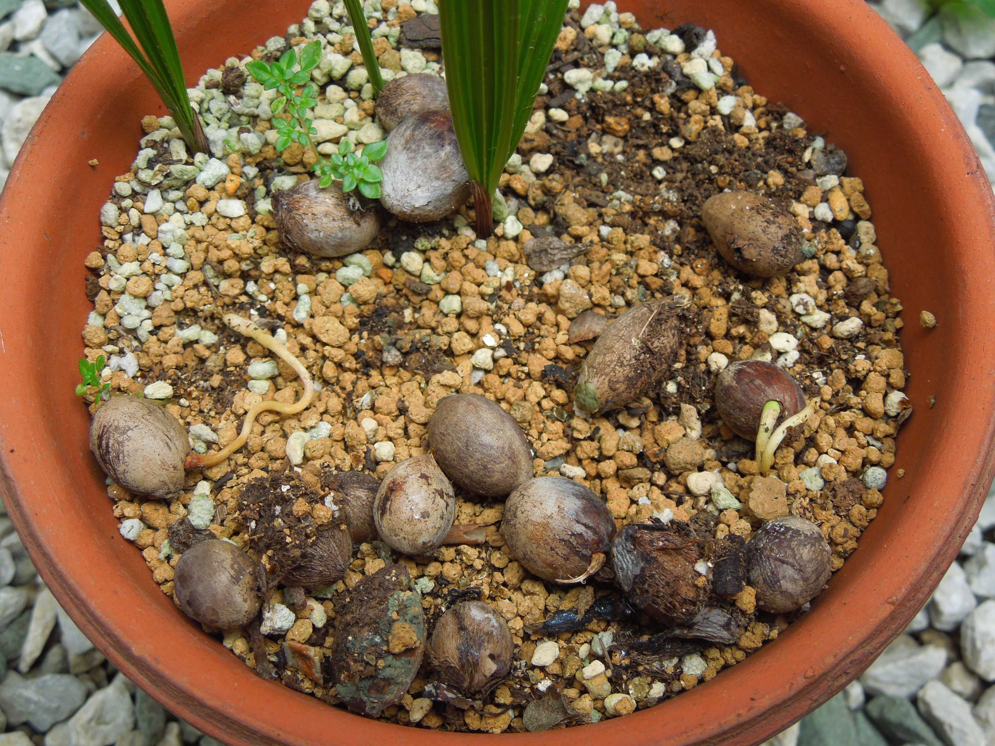 ヤシ類の発芽のタイミングは早かったり遅かったりで良くわからない。