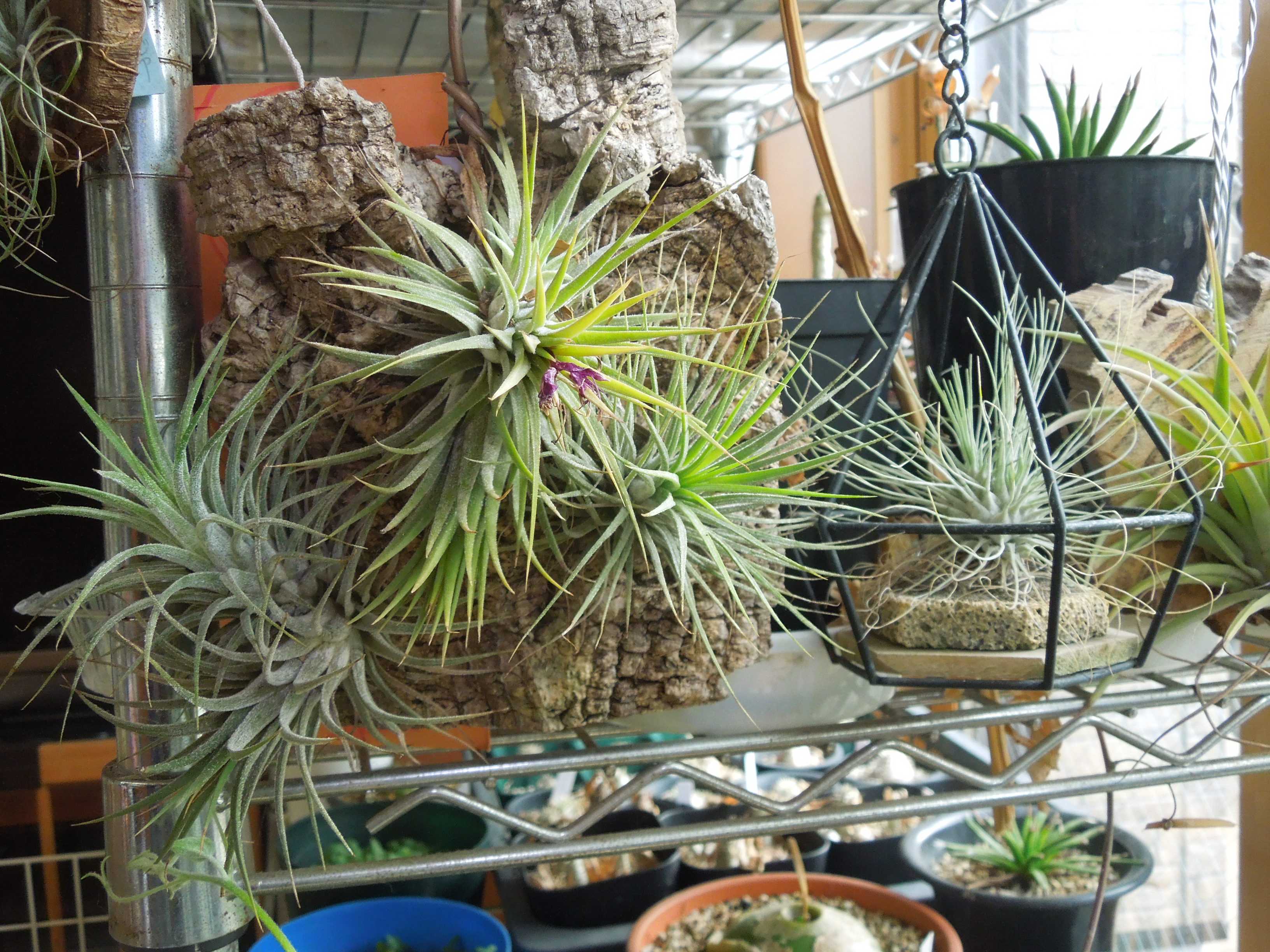置き場所が無くなってきているので、今回も吊り下げられるチランジア(右の2株)を入手。