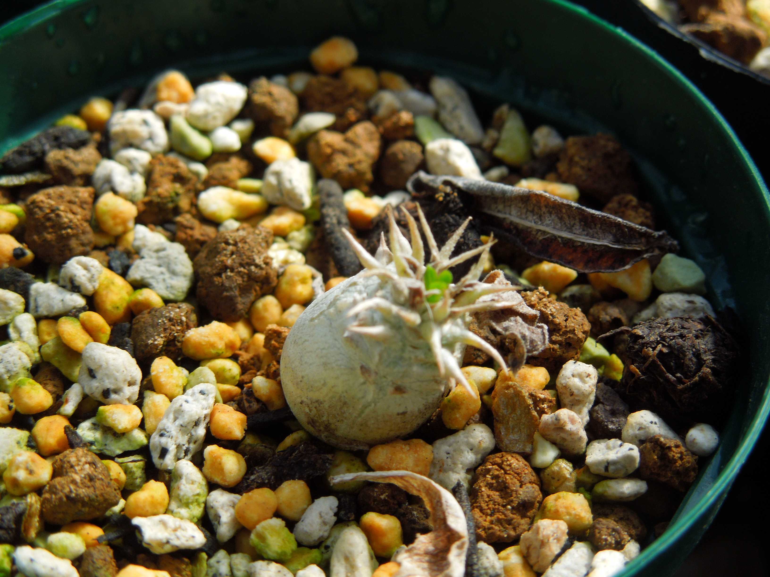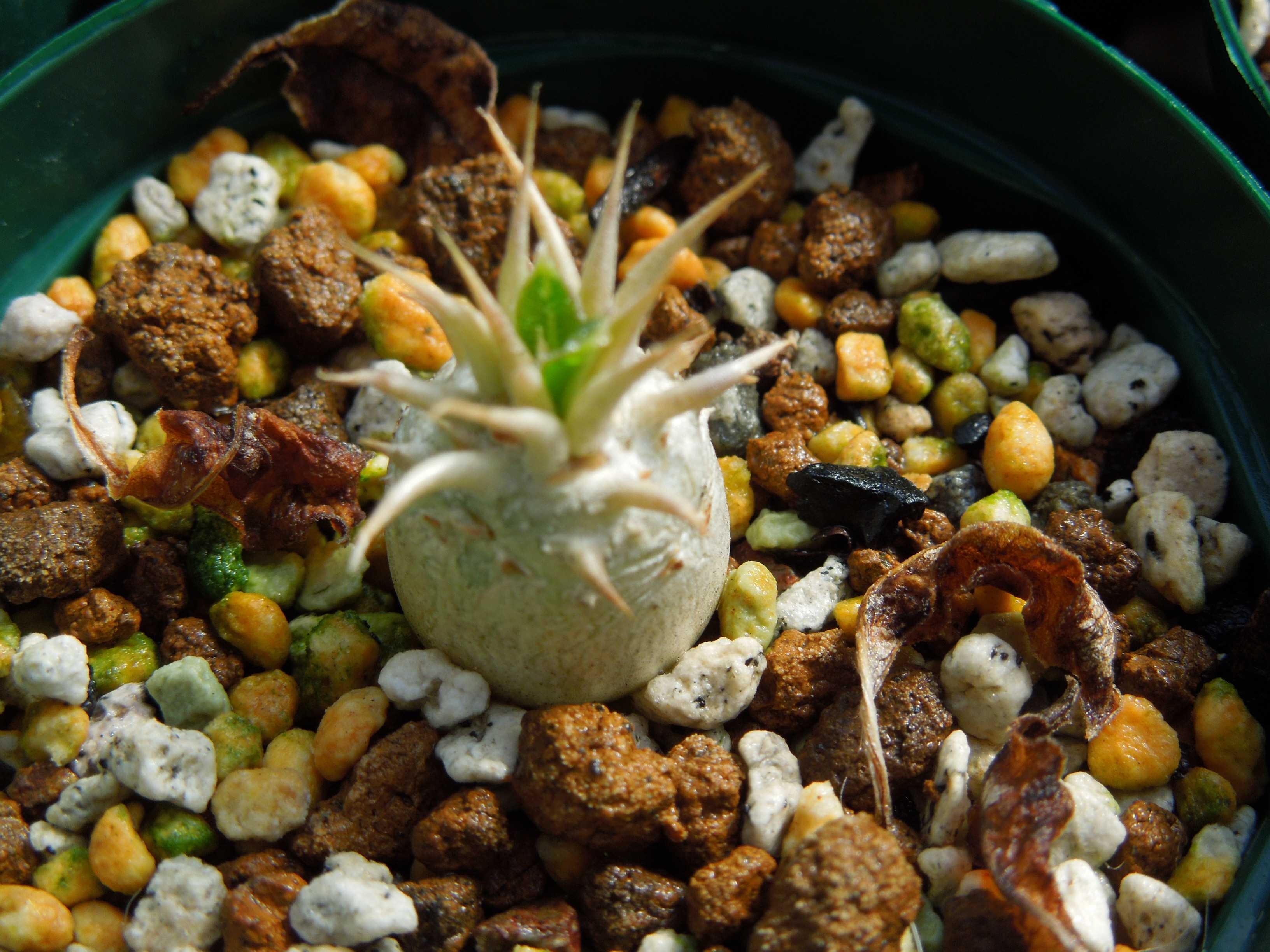 自宅屋外軒下で痛めつけられていたユッカ・リギダの実生苗。
