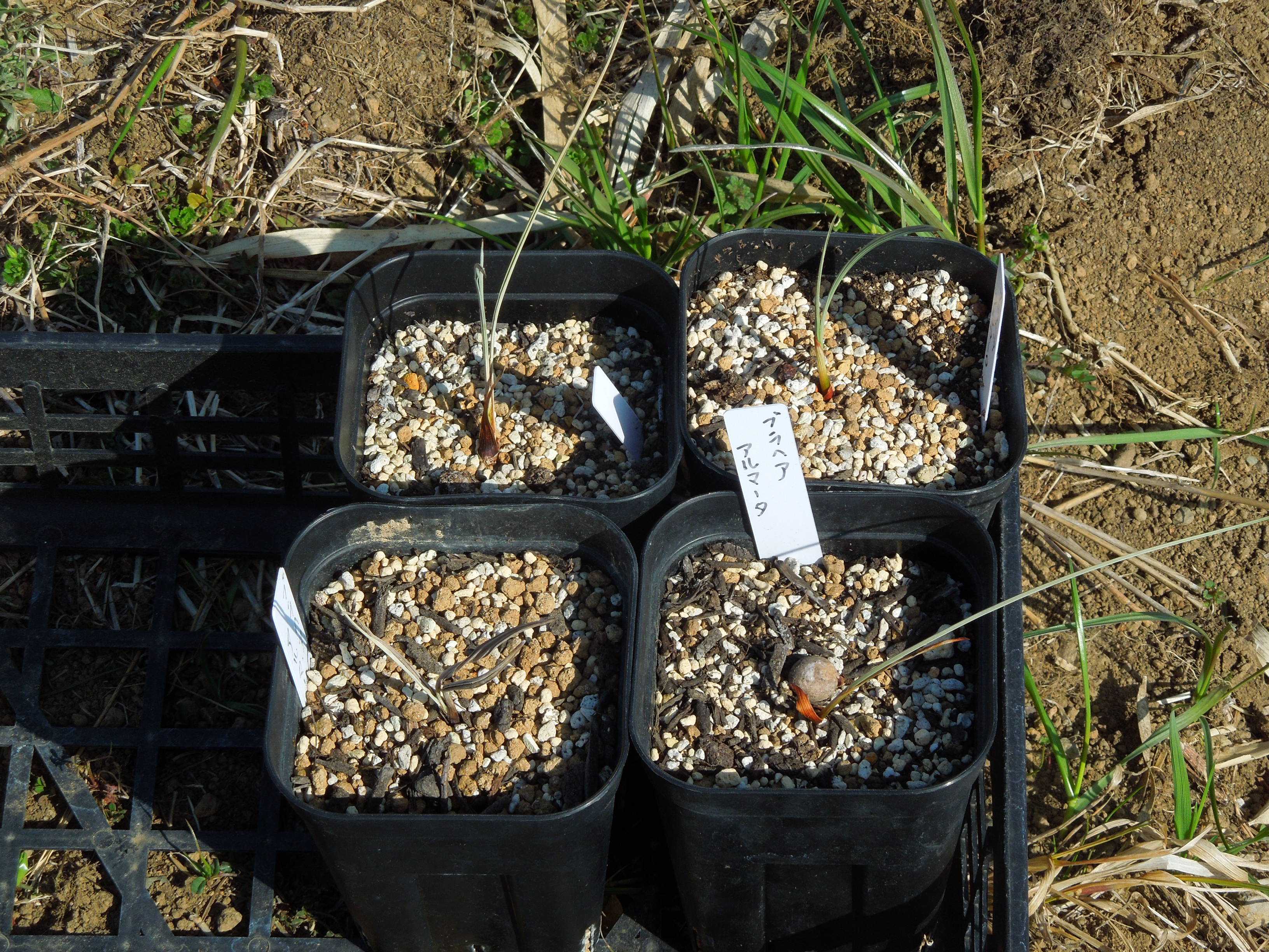 先週末地植えにしたリギダの実生苗の様子を見に行きながら、ブラヘア・アルマータの実生苗5株とユッカ・リギダの実生苗3株を地植えにしてきた。