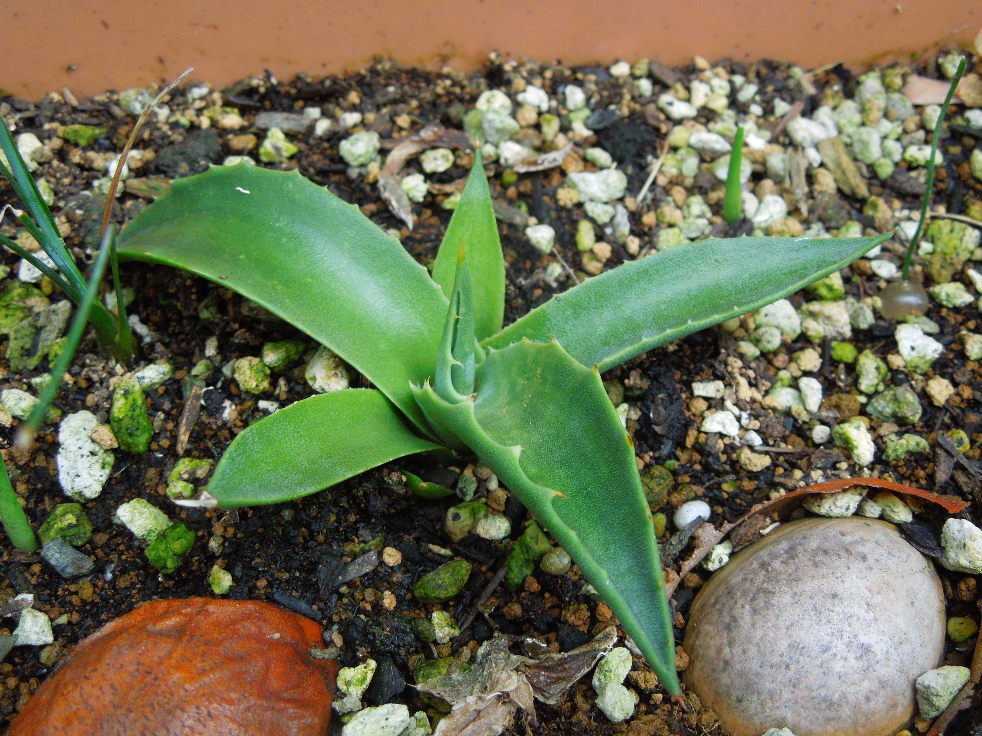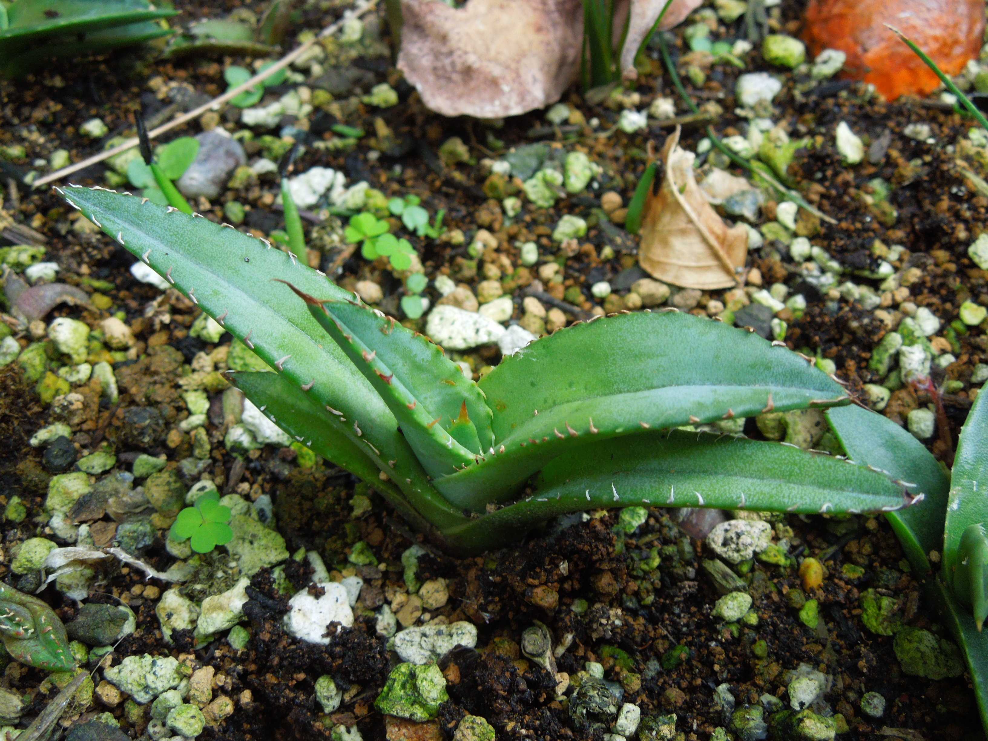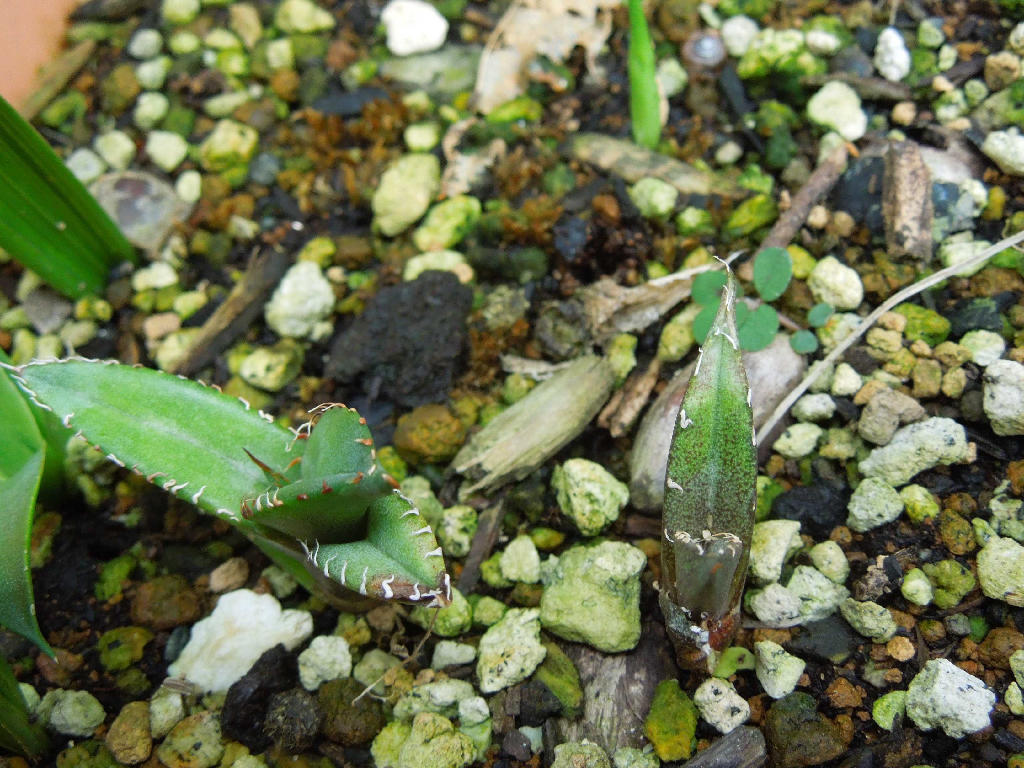 植え付ける鉢が無くなり、隙間に植えてしまったアガベの発芽種子も順調に成長中。