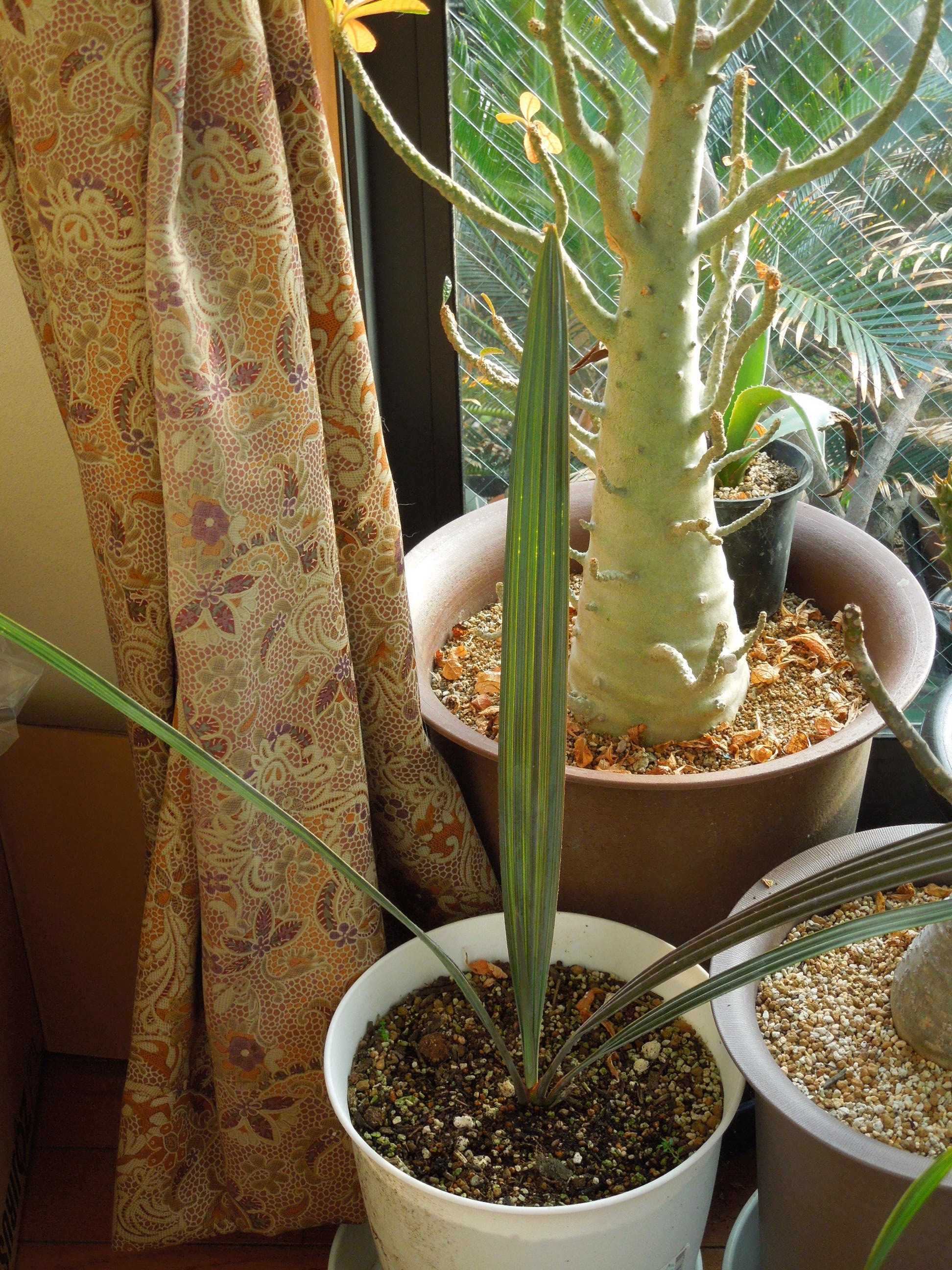 屋内に取り込んであるビスマルキア・ノビリス・シルバー。
