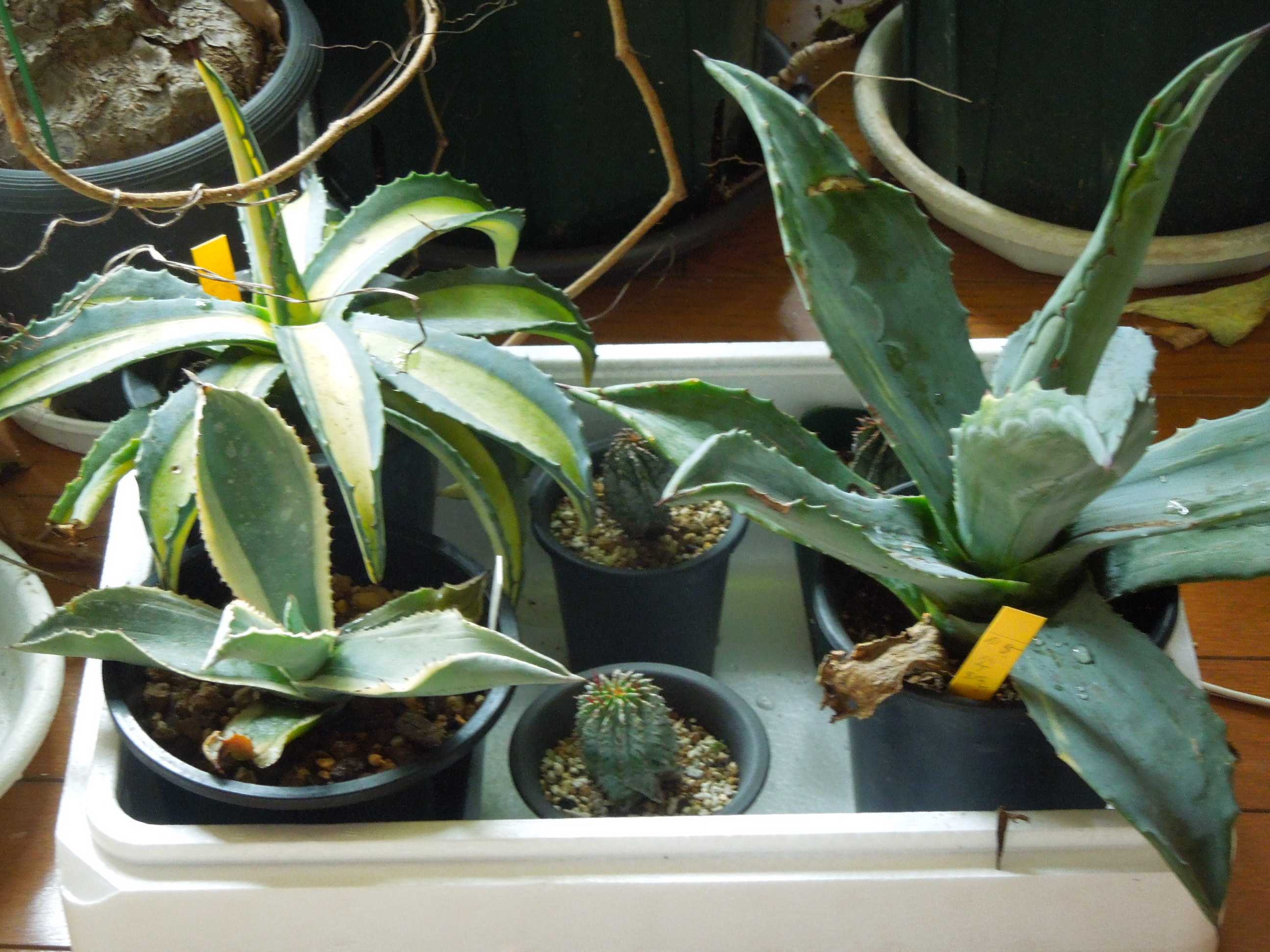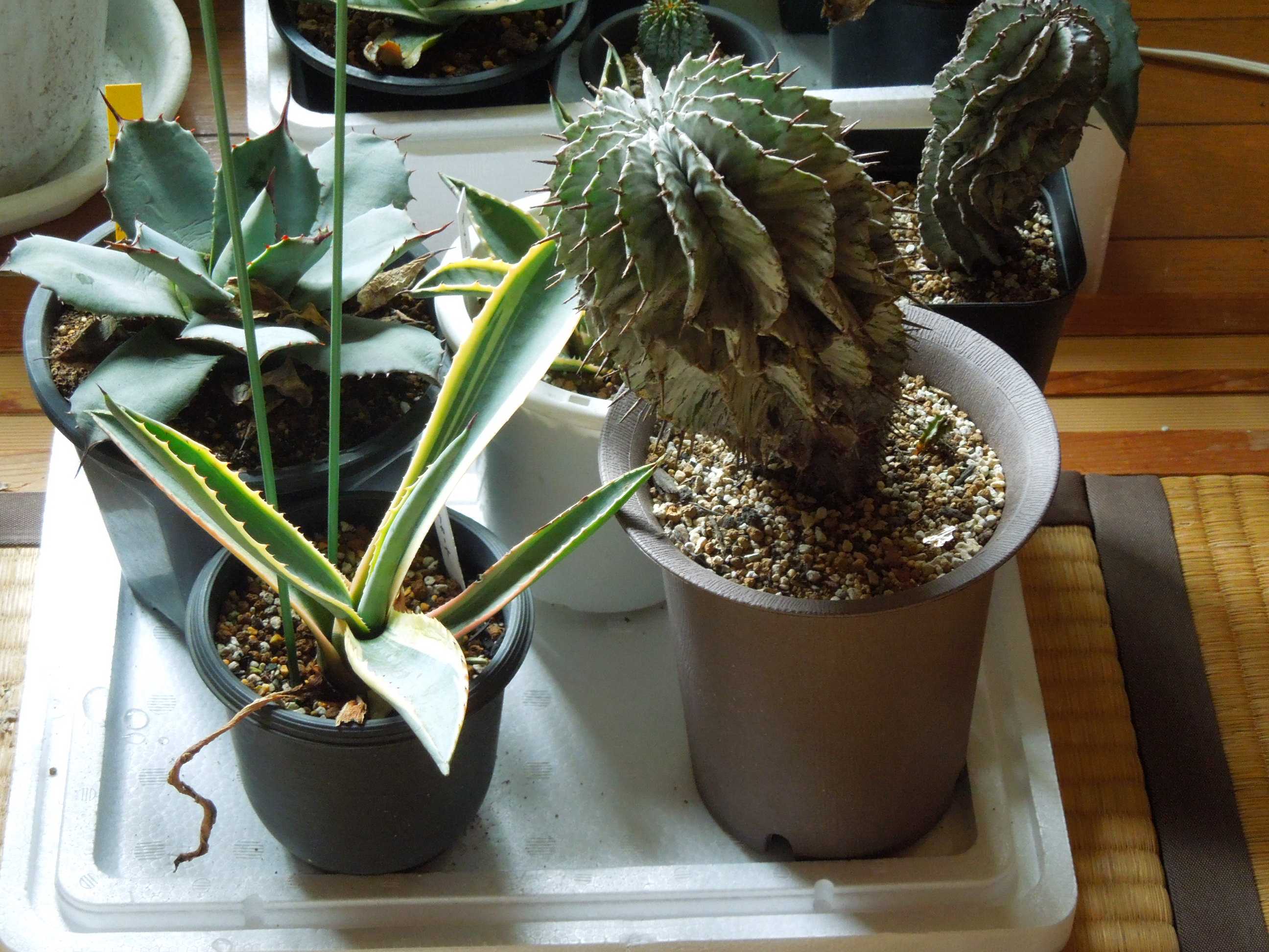 ということで、屋外越冬の予定だったブロック塀の上とか雨ざらしになってしまう植物の避難。