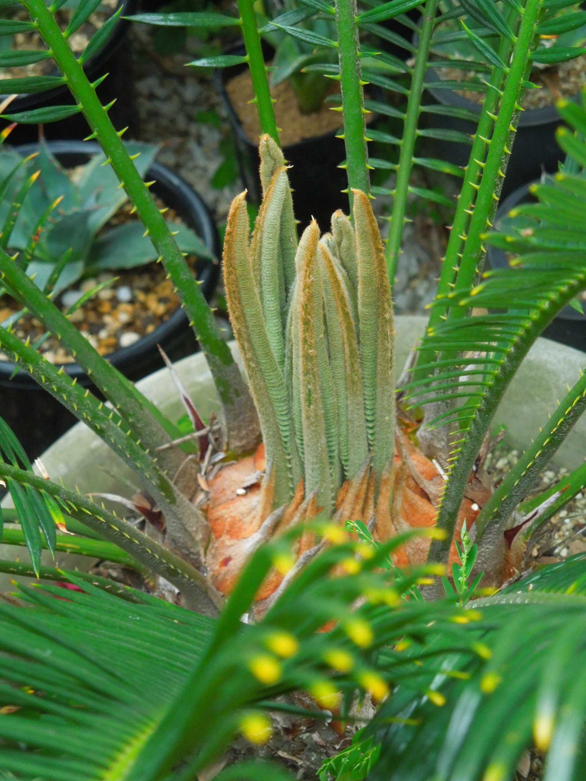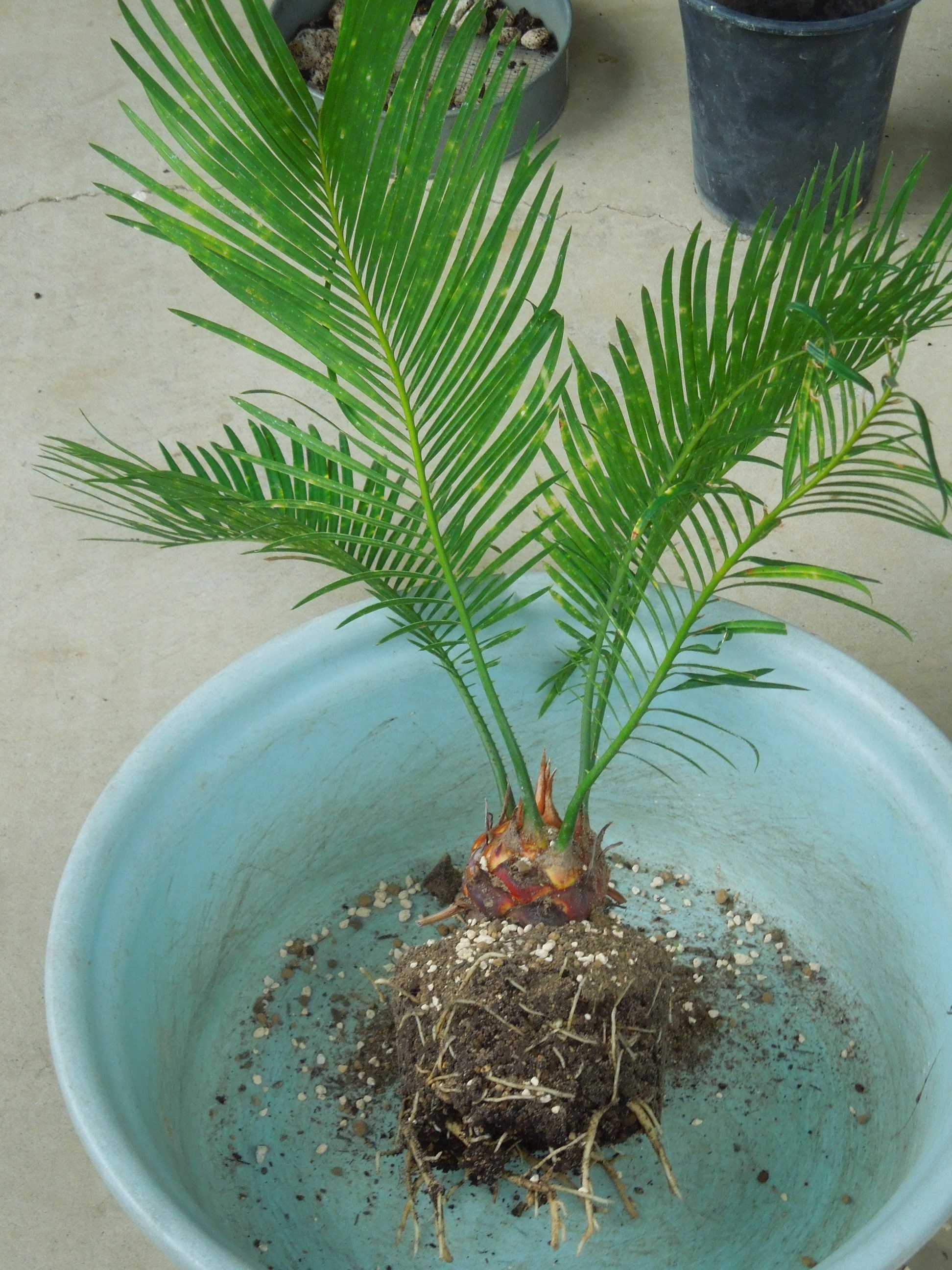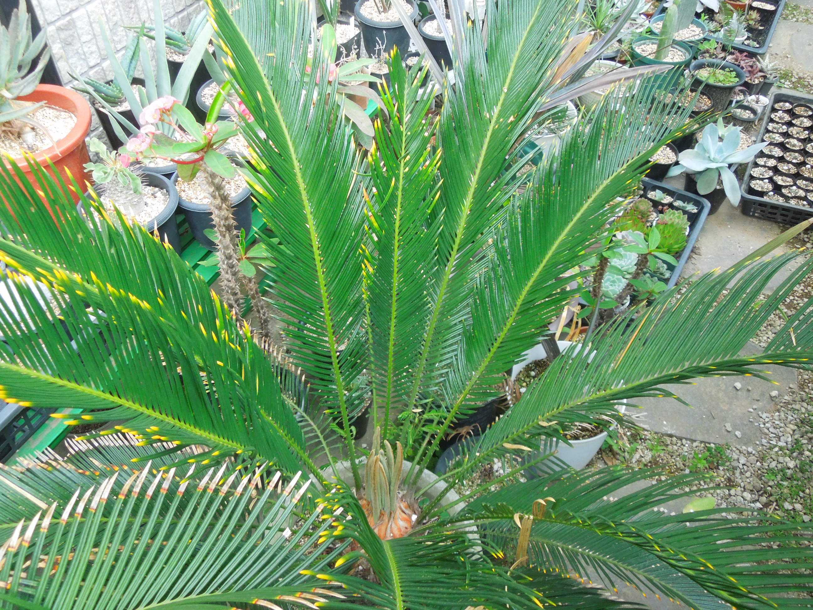普通のソテツの種を蒔いた中からいくつか出た散り斑のソテツだとか・・・
