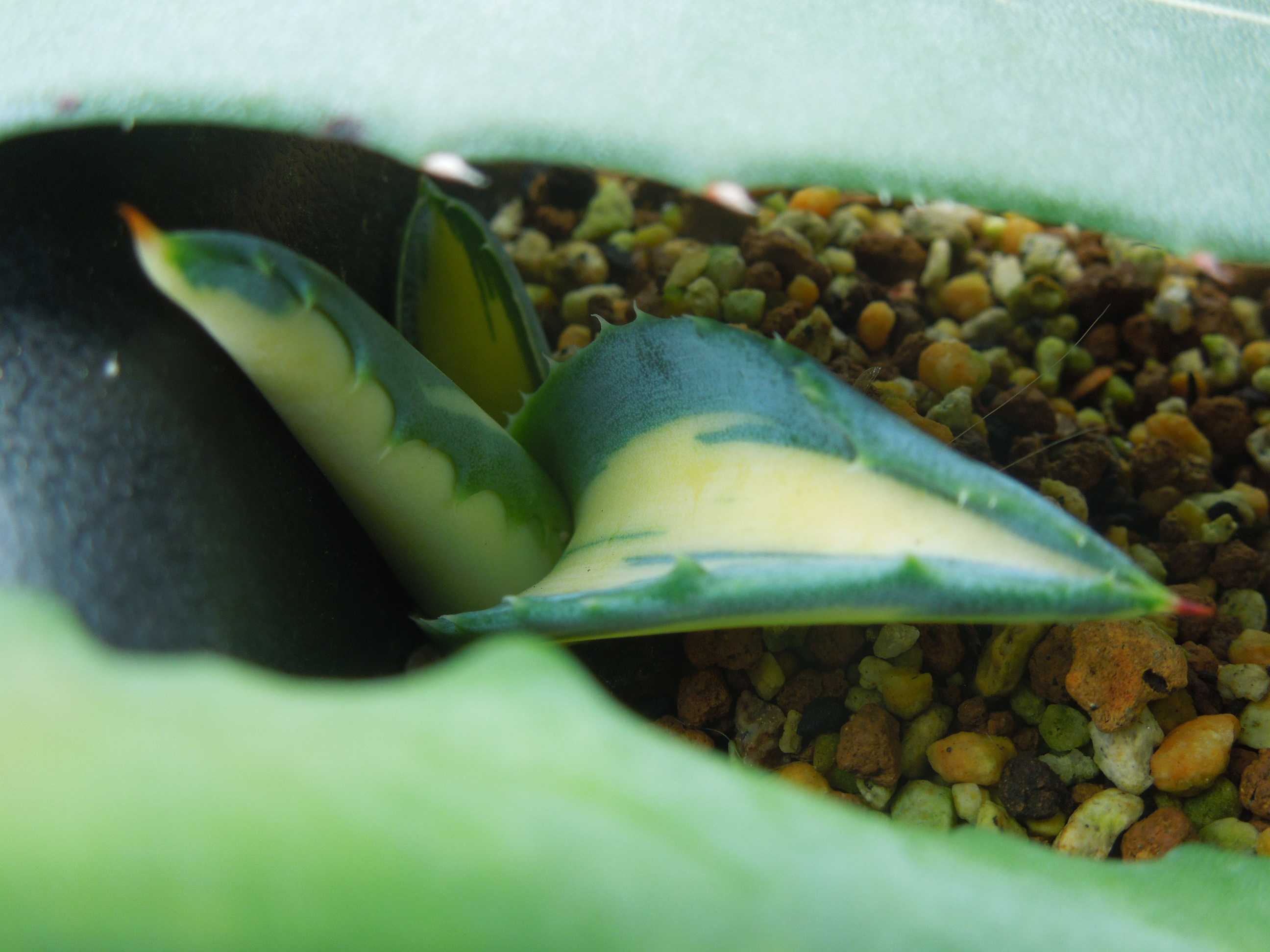 2月にも那智の輝きの子株を外している が、こちらの方が葉の幅も広く刺もしっかりしている感じ。