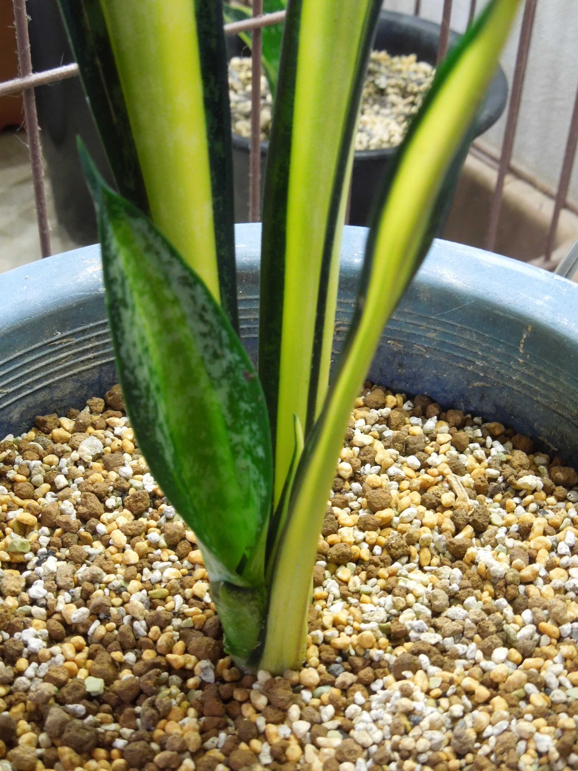「sansevieria trifasciata futura」でググると、黄色の縁に緑の縞斑という逆パターンの画像がほとんどだが・・・