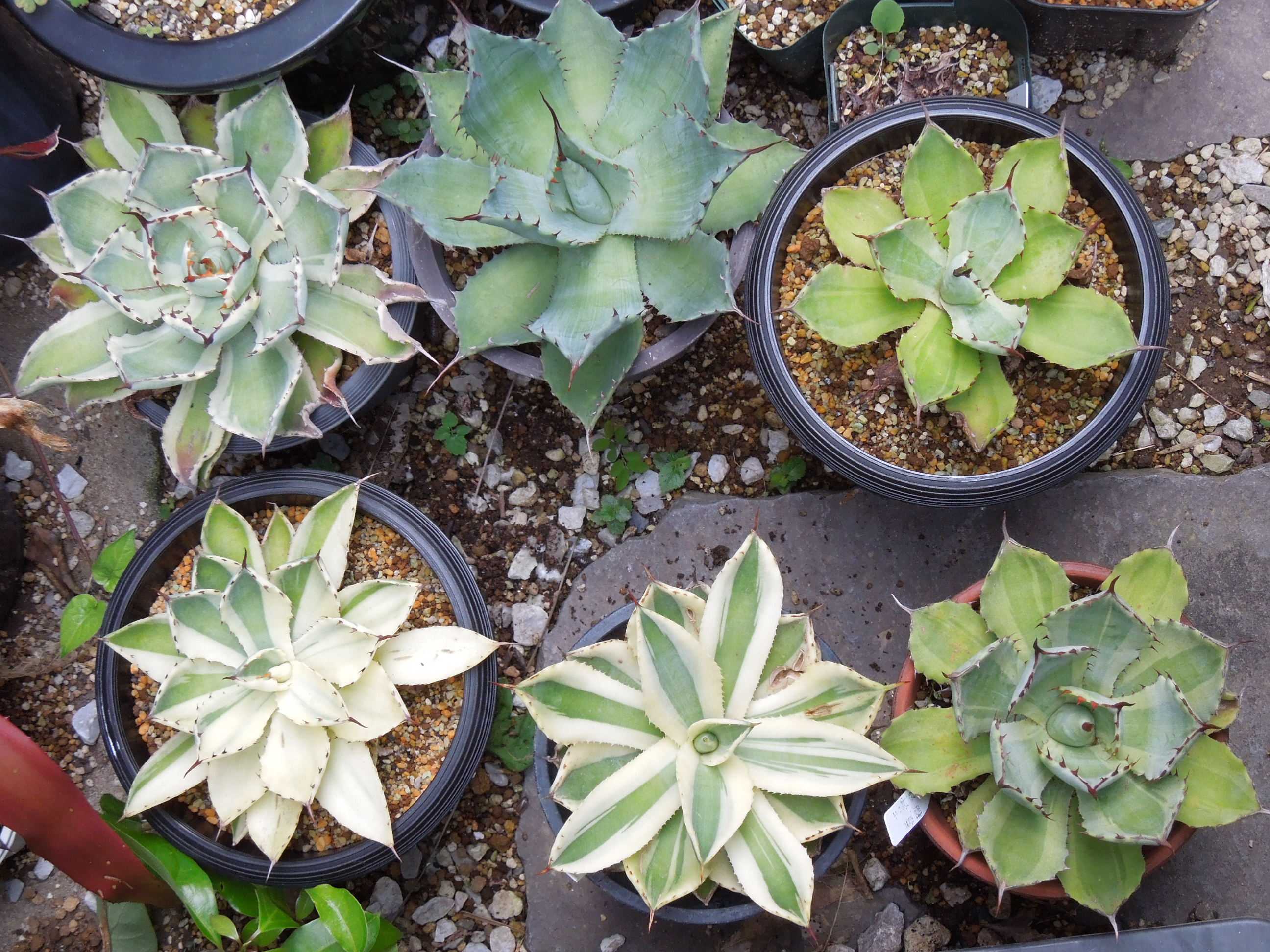 チタノタ・白鯨~白いプラ鉢は今年実生したウンカリーナ・ルーズリアナ。
