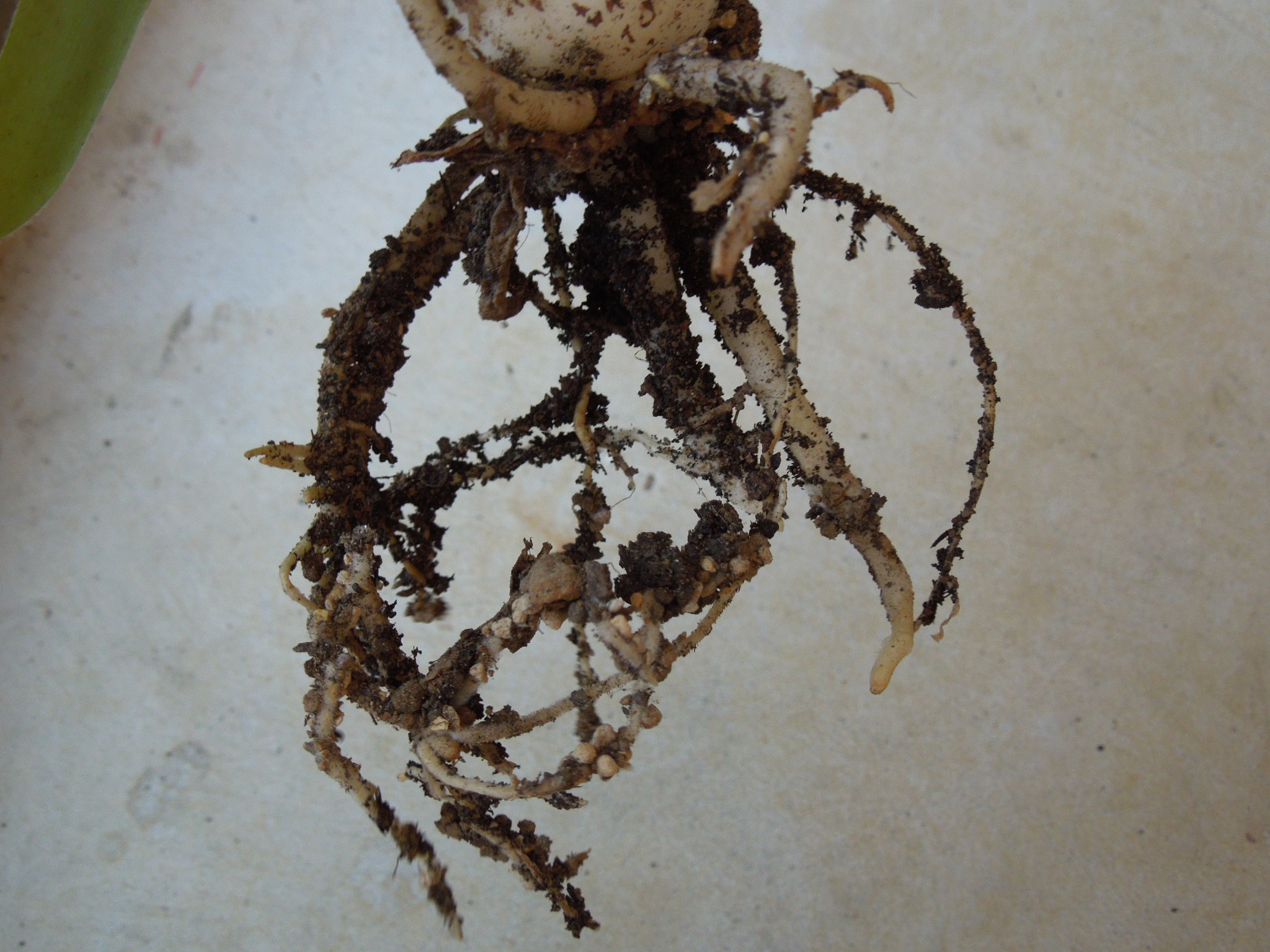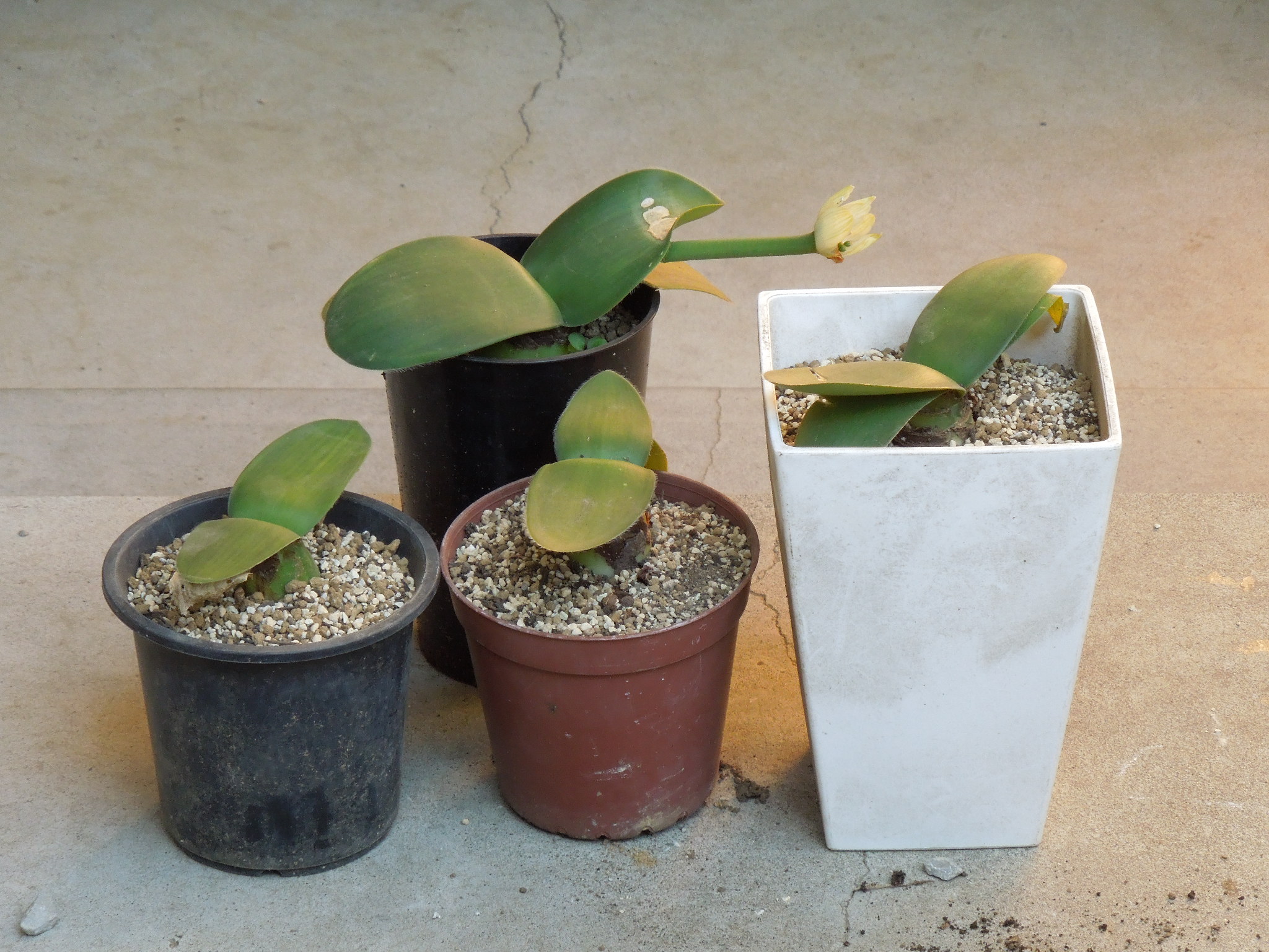 大きい鉢に植え付けた苗(丸い深鉢)は花を咲かせ葉も大きいので・・・