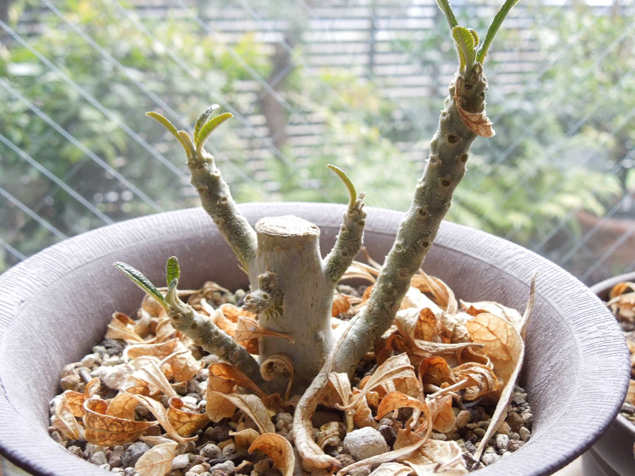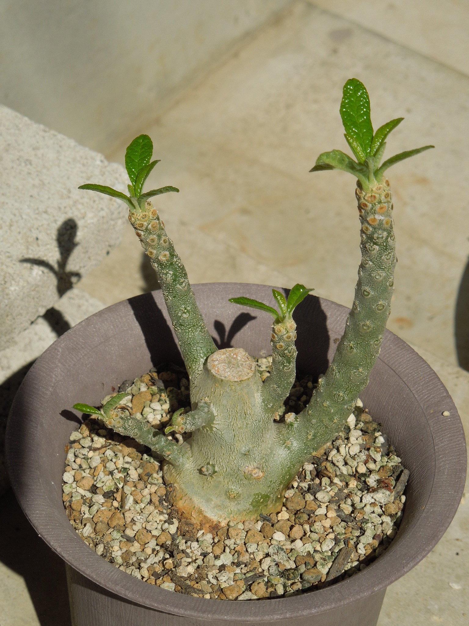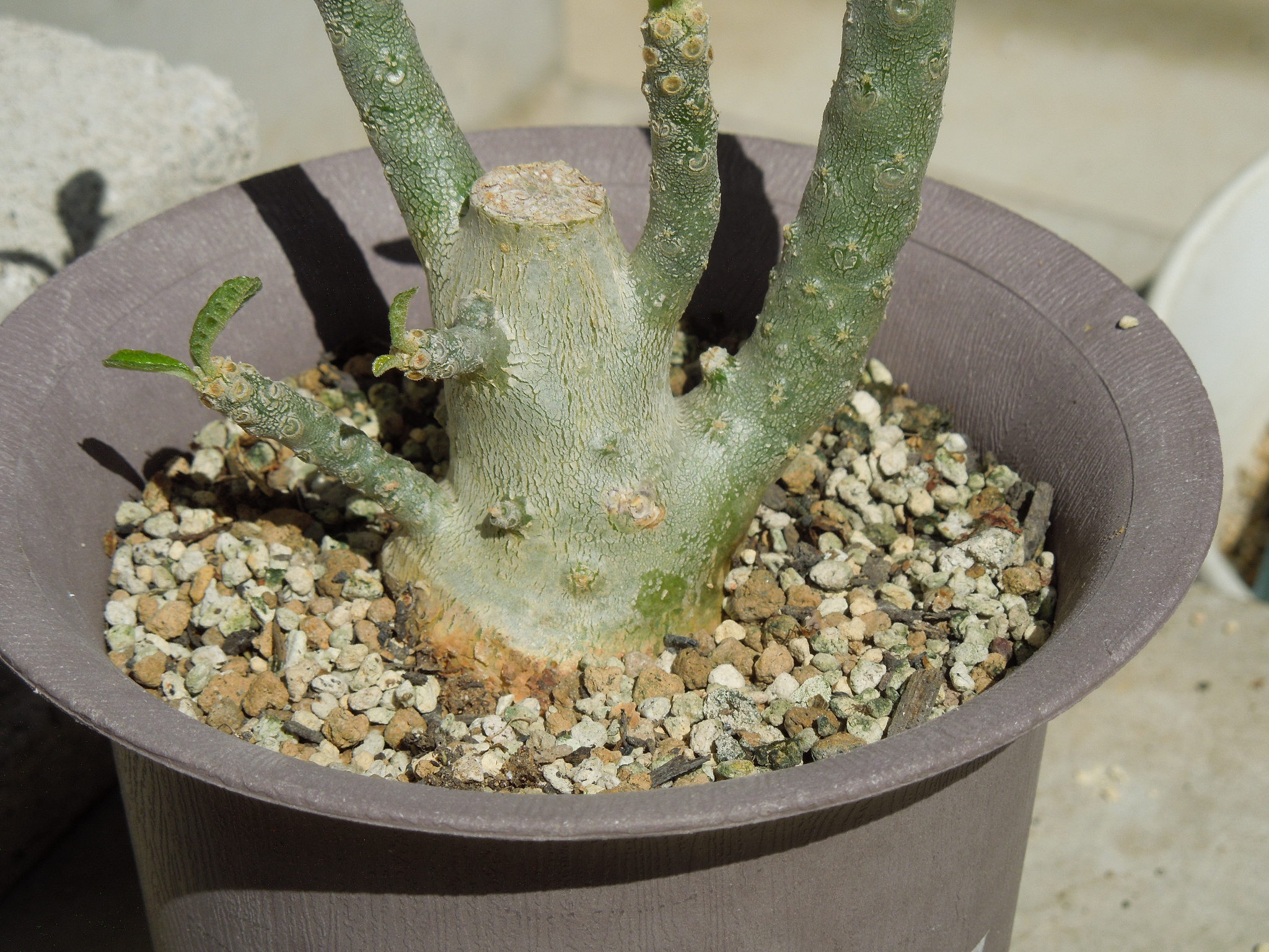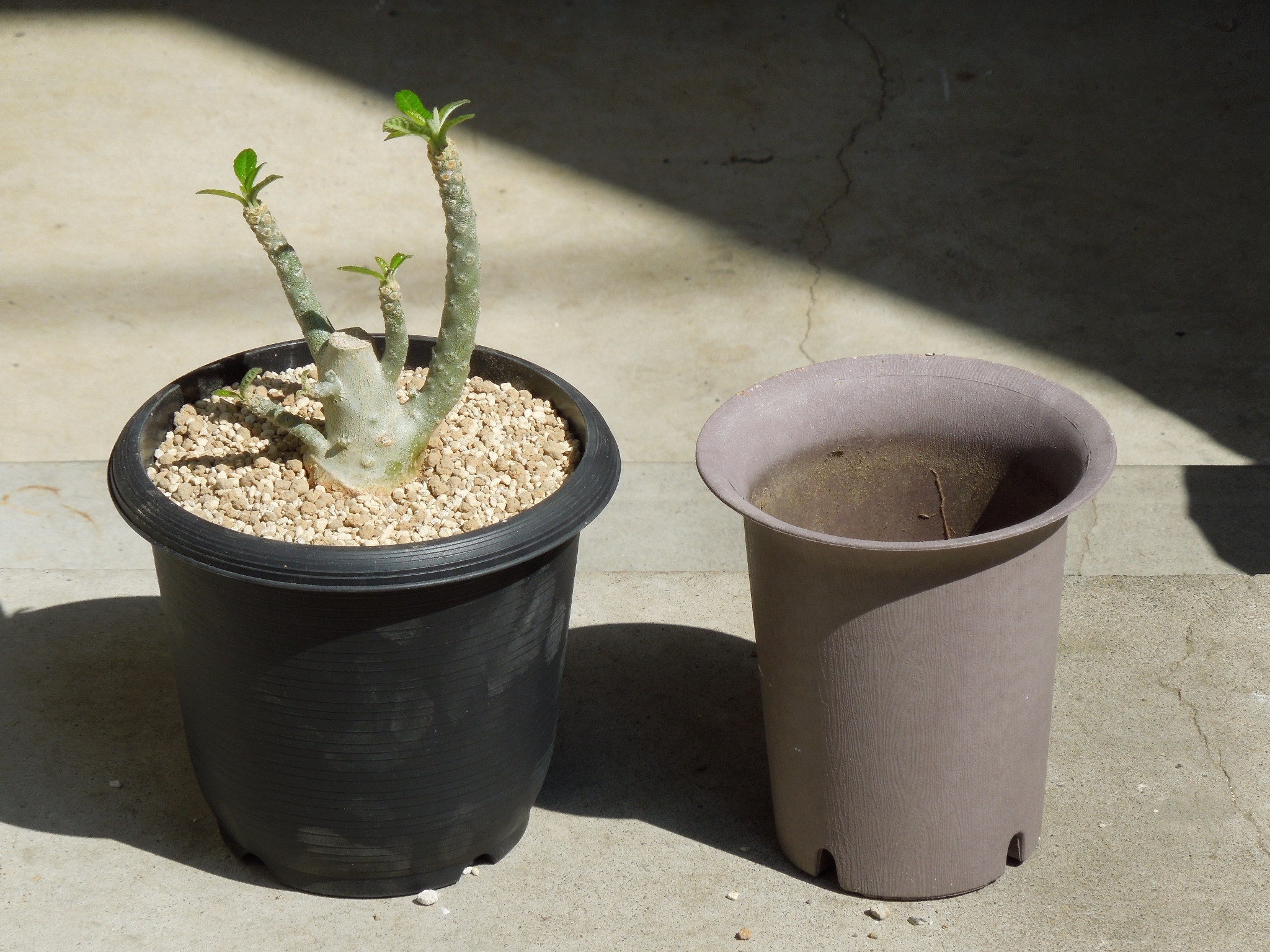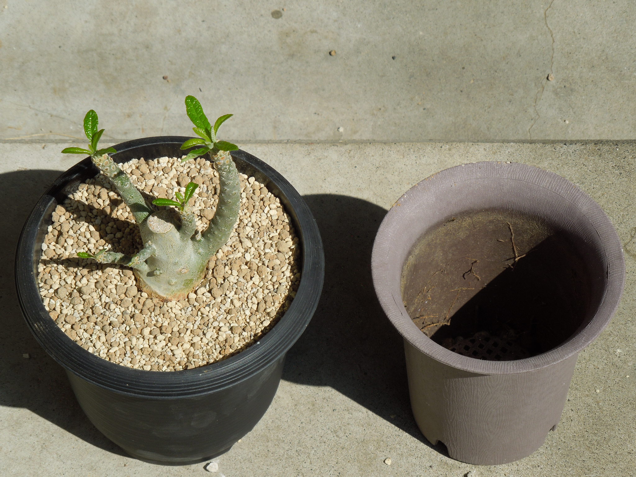 ドルステニア・ギガスは、大きい鉢にタップリの用土で育てた方が生長が速そう。