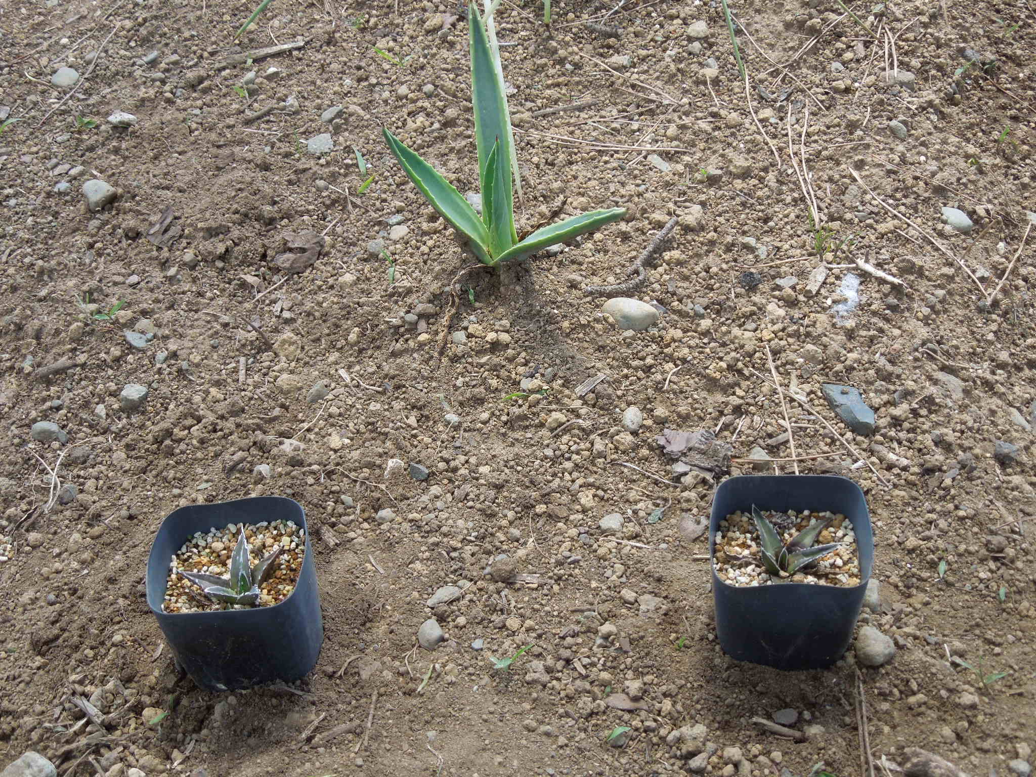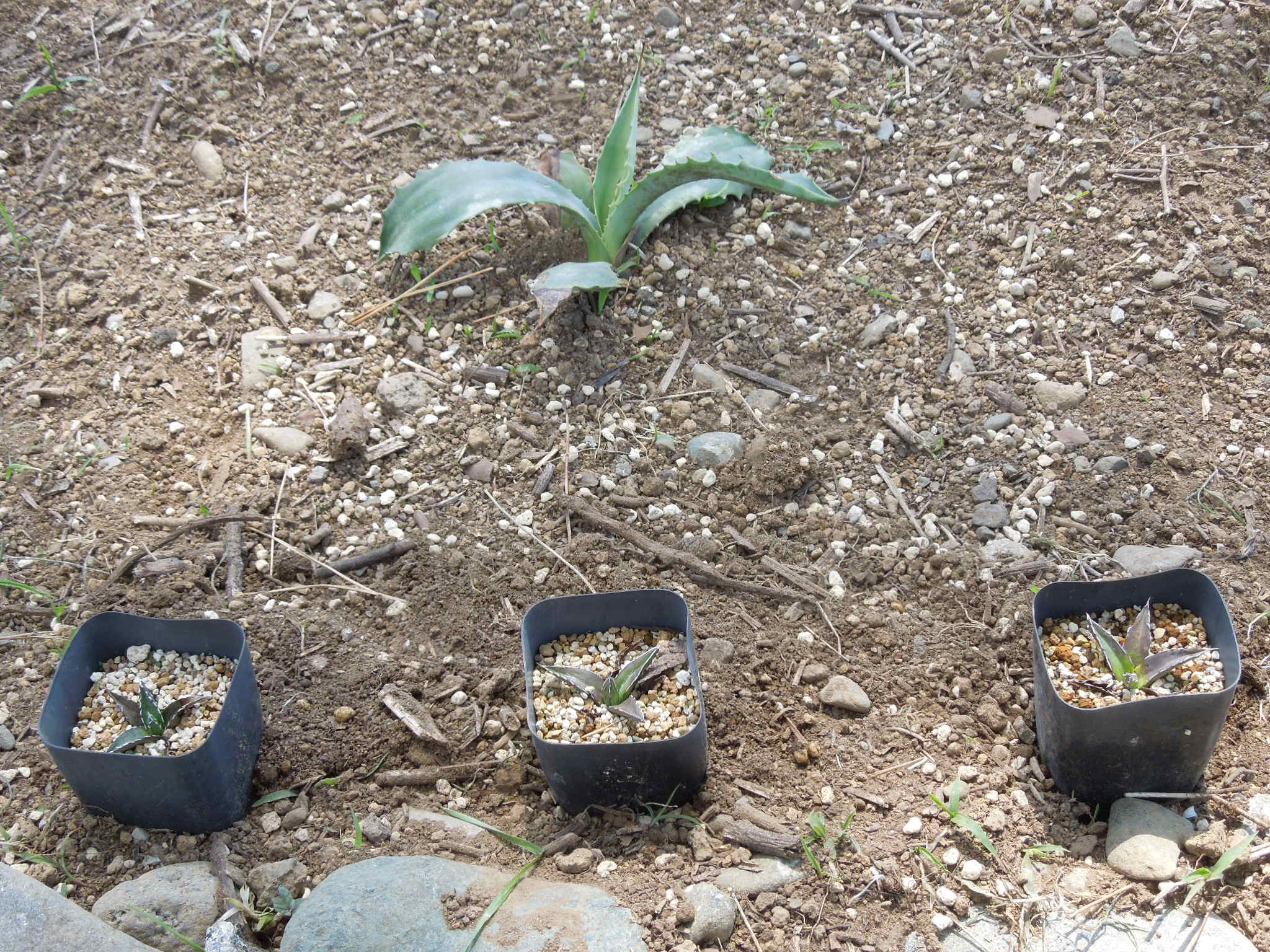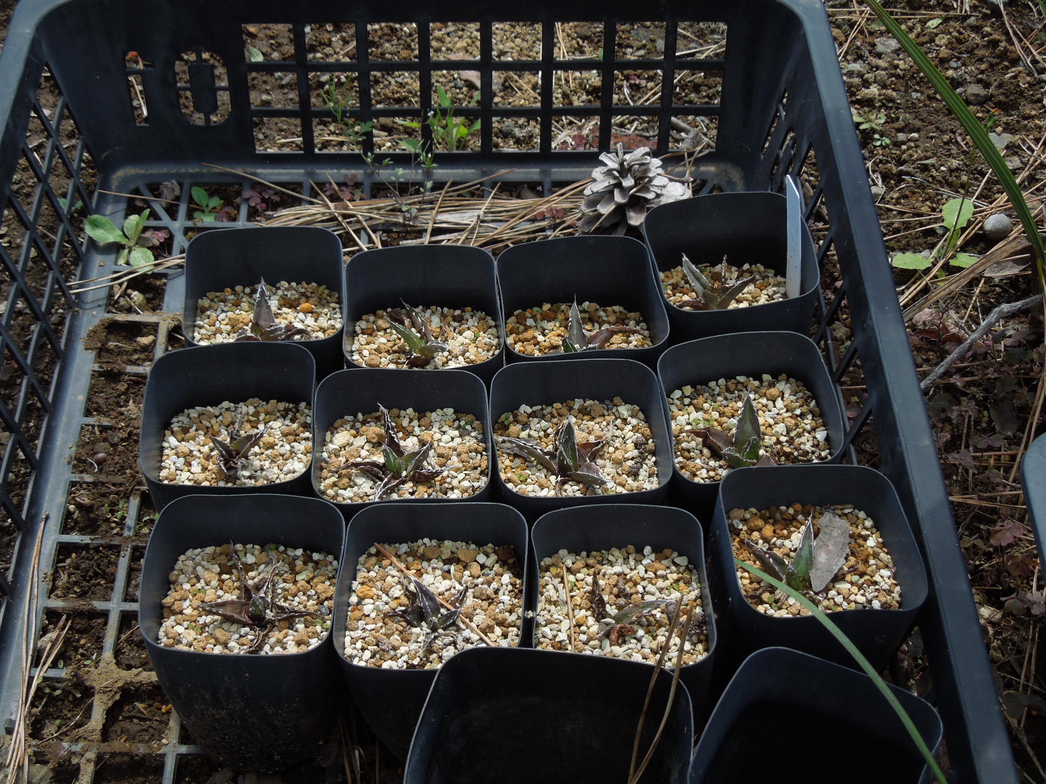 自宅で雨ざらし越冬した小苗とか、外した子株とか・・・