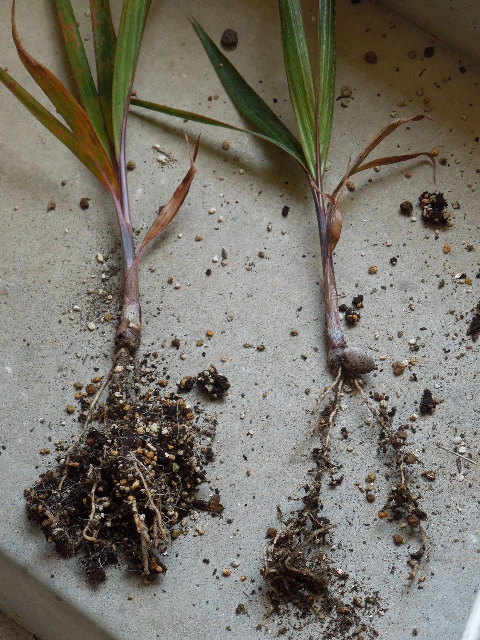鉢から抜く時に、用土はほとんど落ちてしまった。