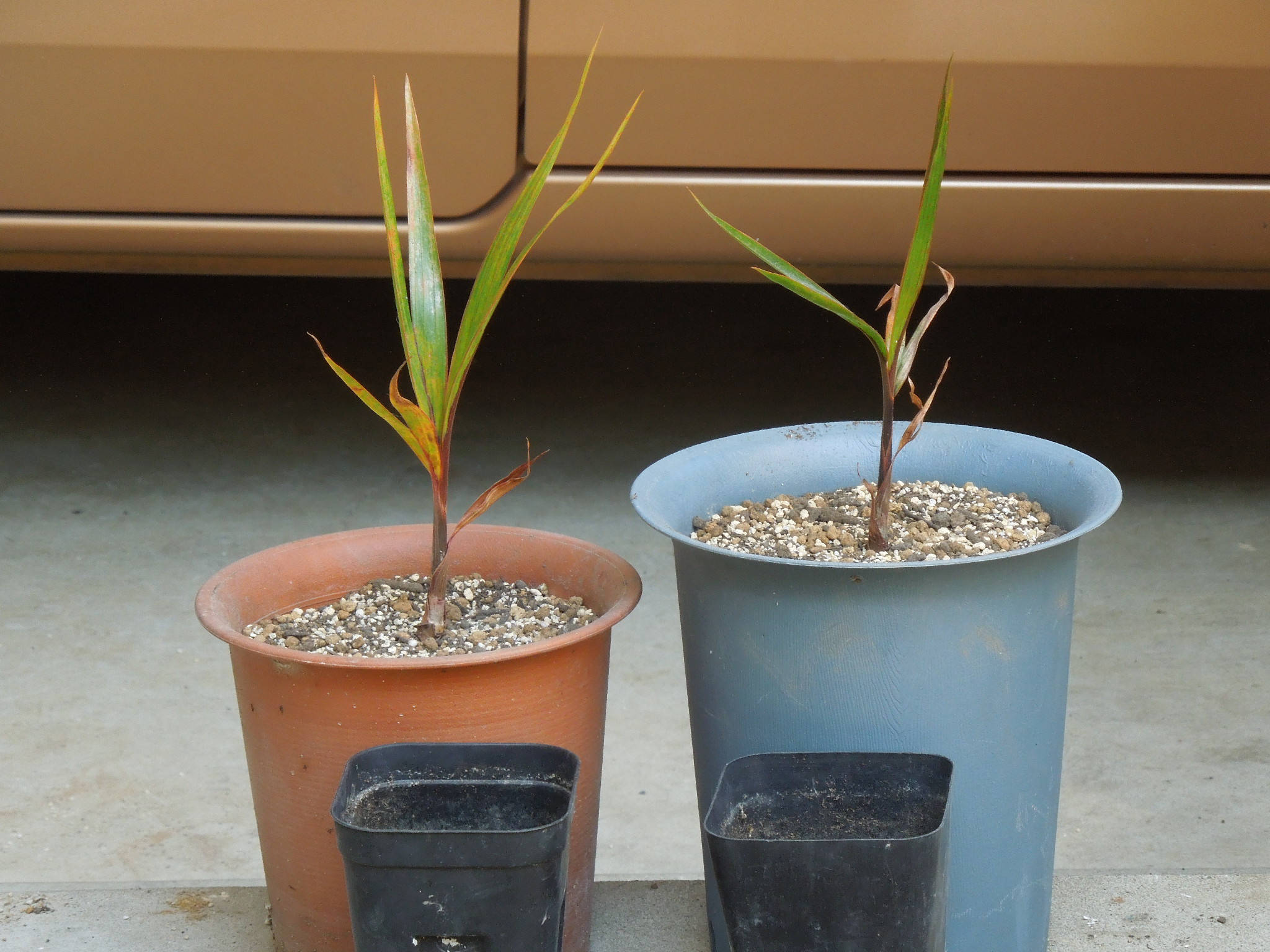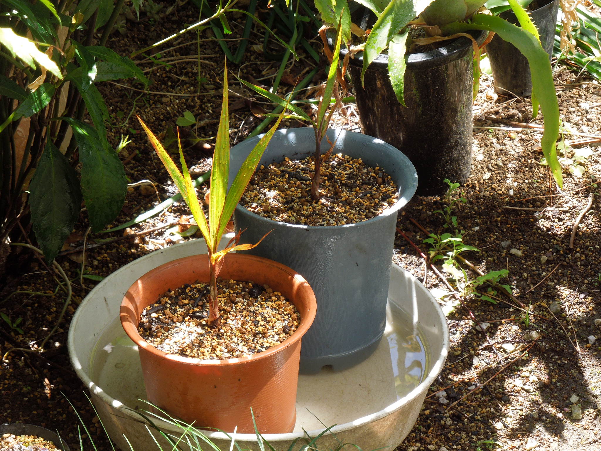 木洩れ日が当たるくらいの場所で、腰水管理。