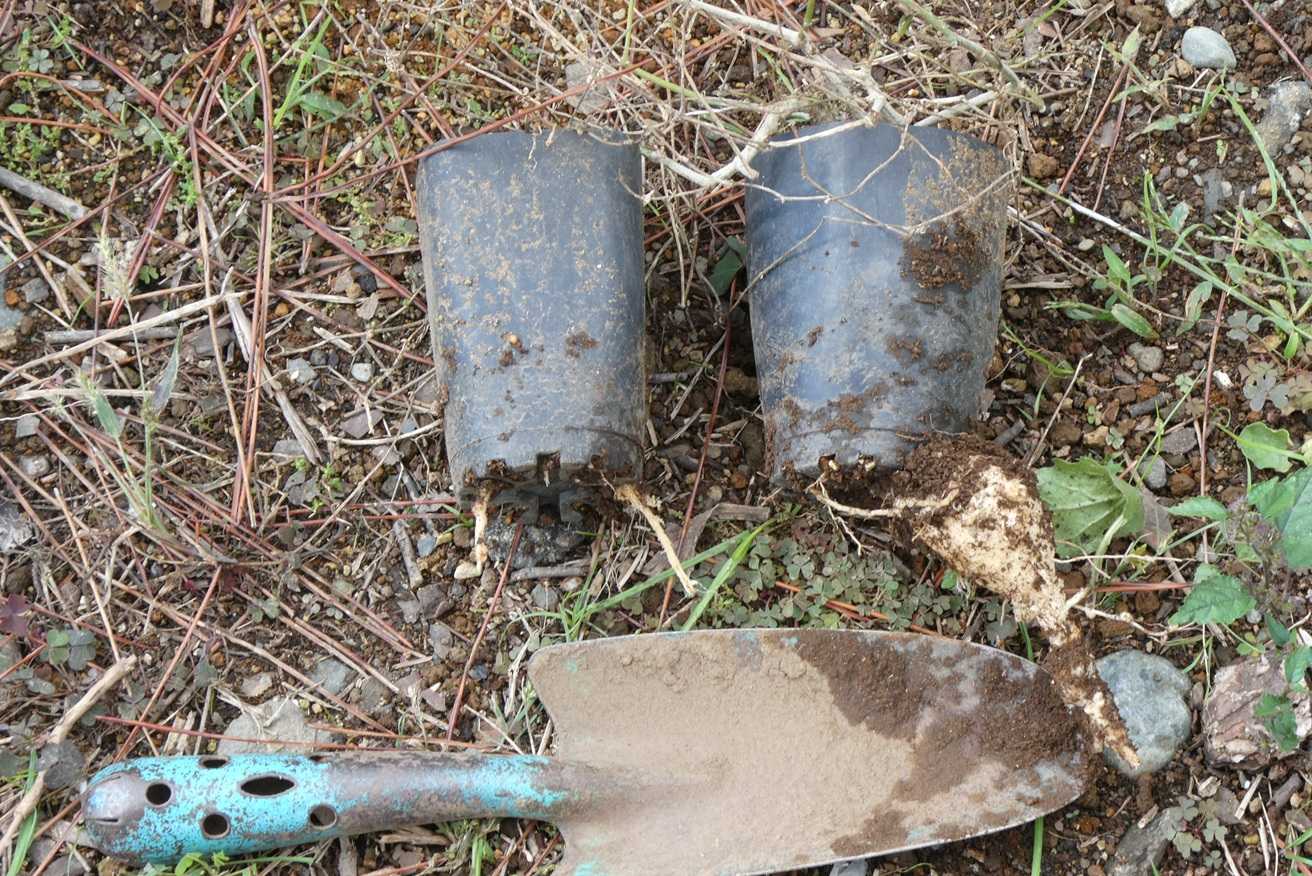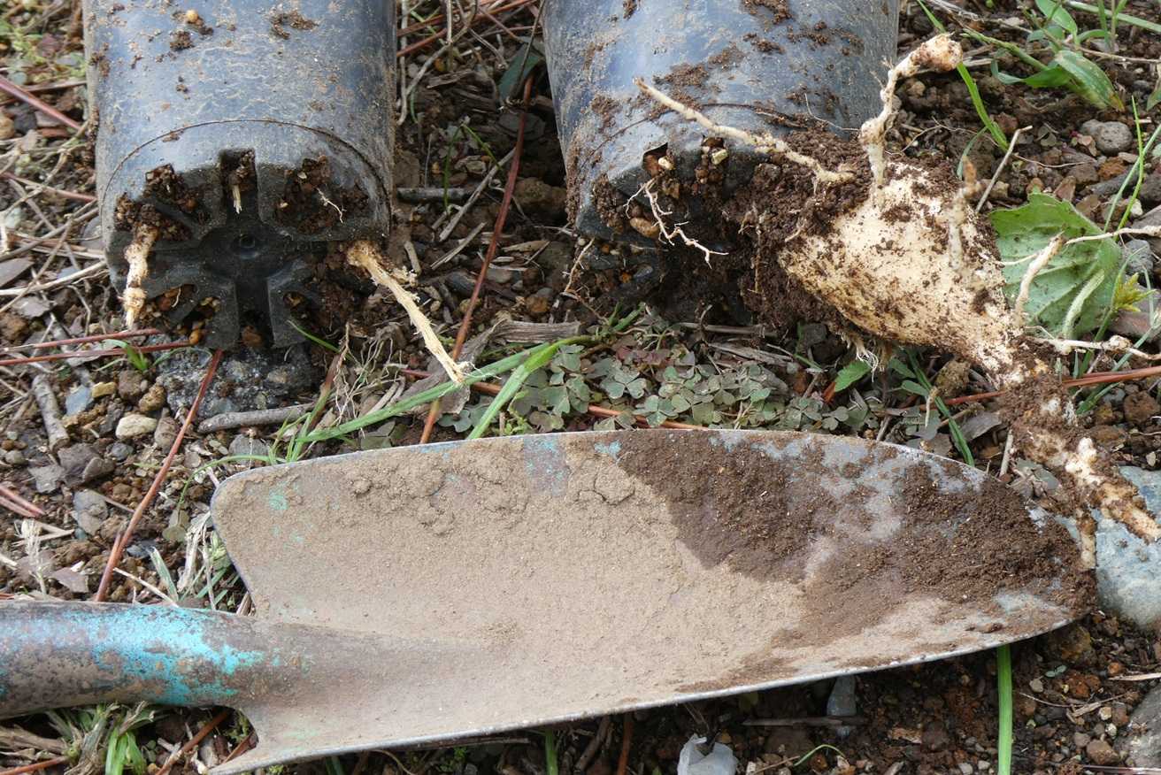 他の苗と様子が違うので、鉢を堀上げてみたら・・・