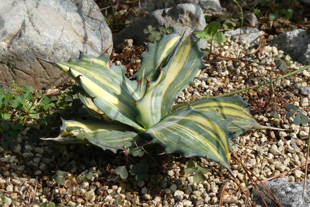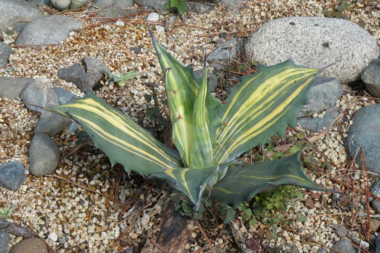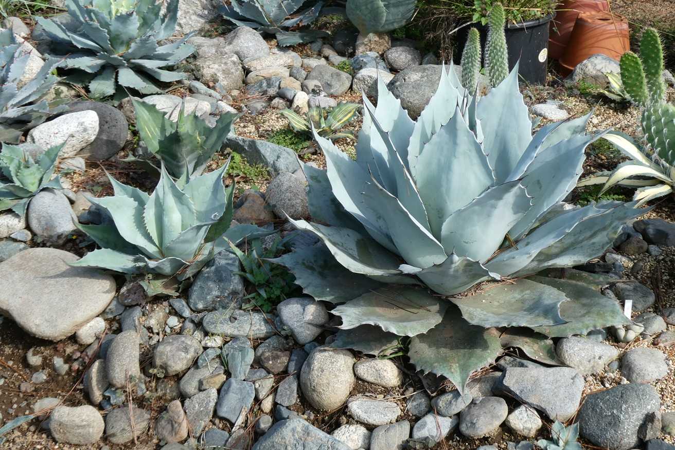 3年前に購入したフロスティーブルー(右)と実生のオバティフォリア(左)