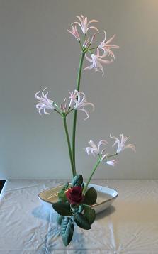 今週末は10月の支部研究会です。今月は秋らしい写景から琳派調、花意匠までバラエティに富んでいます。まずは、今回体験で初等科クラスに出席するHさん。初等科の課題はネリネ3、薔薇1「花意匠・たてるかたち」です。 初等科は本数が少なくてバランスが取りにくく、本科より難しいかも知れないと常々思っているのですが、今回も薔薇1本です師範科2期の課題は珊瑚水木3、薔薇3「盛花・傾斜型」 Tさん3級の課題はカンガルーポー4、カーネーション3、玉しだ5「花意匠・ならぶかたち(正面性)」です。 S子さん、今回から3級に進級です8月の4級が「ならぶかたち」だったので、進級で続いてしまいましたが、逆にラッキーかもしれませんねきょうのカーネーションはすごいピンクでした2級の課題は杜鵑草5、小菊3、立日蔭「写景盛花・様式本位」です。 Eさん SさんSさんは、今は研究会に出席していなくて、もう何十年も3級なのですが、今回2級の杜鵑草をいけたいと言うことでお稽古しました。昔研究会に出席していた時代は、私より先輩だった方なので、ブランクがあってまたお稽古していますが、2級の花もなんのその こっちも見てね 「おばさんのつぶやき」 ブログランキングに参加しています。 きょうもポチっとお願いします