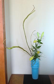 大分遠くの海上を抜けていった台風ではありますが、台風一過のきょうは10月としてはちょっと暑かったです。きょうは親先生の教室に行ってきました。来週は研究会のお稽古になるので、今週は普通のシンプルな花材。石化柳、透し百合、霞草 が来ていました。普通に「瓶花・直立型」にしてみました。こっちも見てね 「おばさんのつぶやき」 ブログランキングに参加しています。 きょうもポチっとお願いします